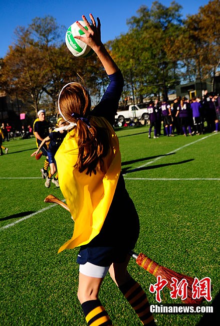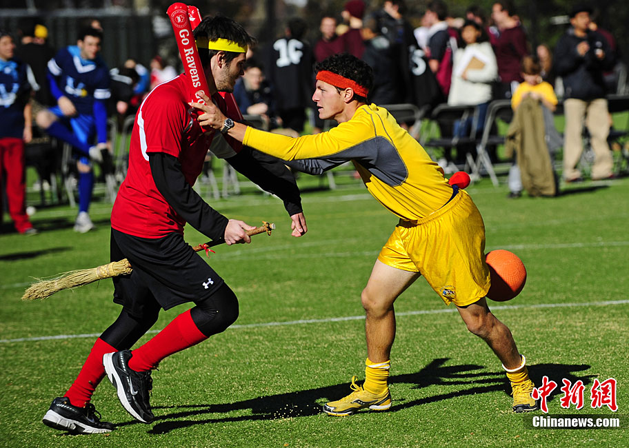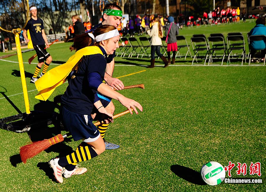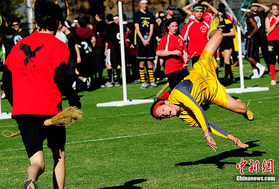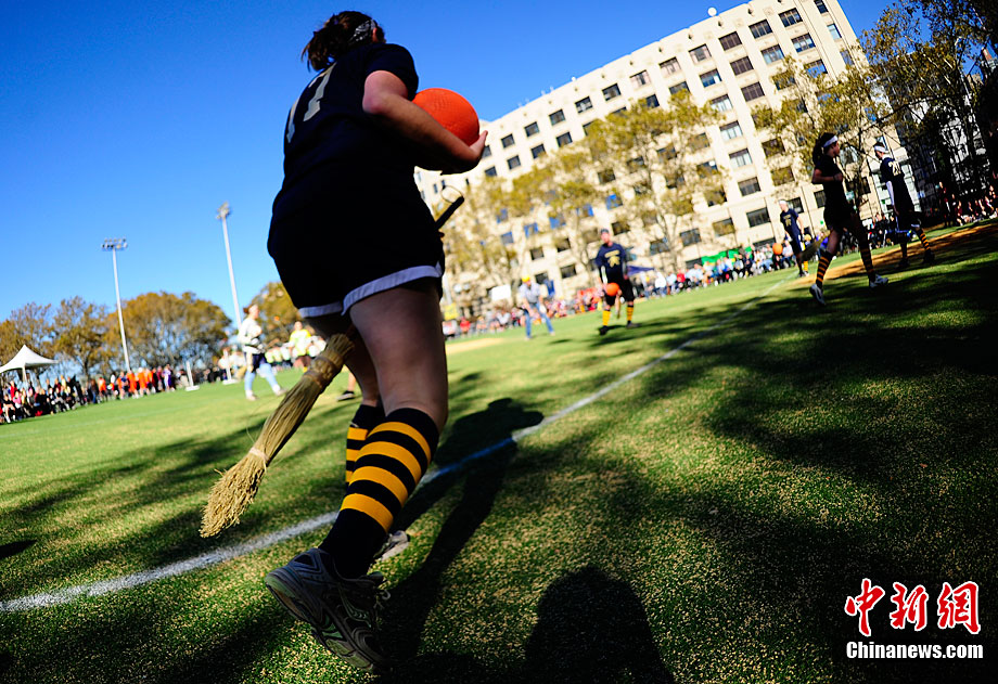 當?shù)貢r間11月13日,數(shù)百名哈利波特迷們在美國紐約舉行了第四屆魁地奇世界杯比賽?催^《哈利·波特》小說或電影的人都會對其中描寫的魁地奇球賽印象深刻,F(xiàn)實版的魁地奇比賽嚴格遵循原著風格,并發(fā)展成了一項混合手球、躲避球,還摻雜了一點曲棍球的新奇運動。