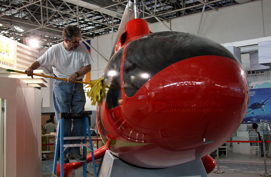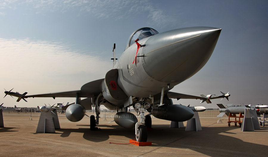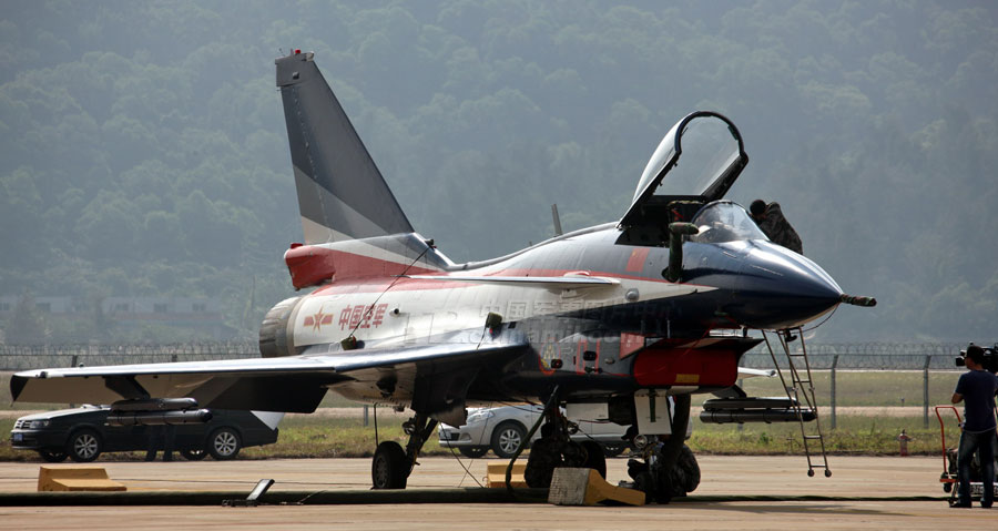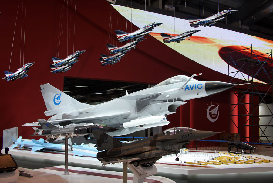 11月14日,參加第8屆中國國際航空航天博覽會的各場館基本布置就緒。圖為殲10表演機(jī)。圖片來源:中國軍網(wǎng) 喬天富 攝
