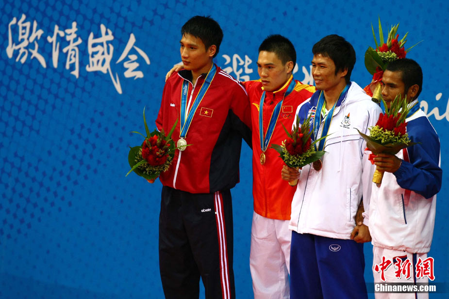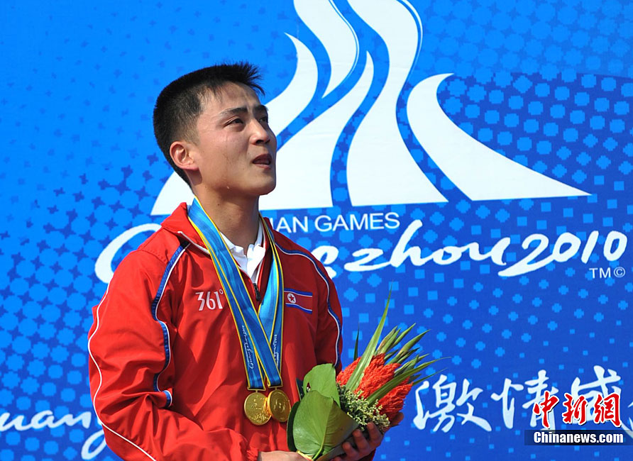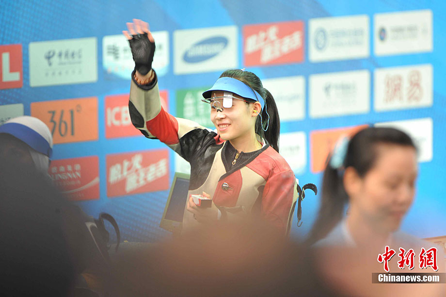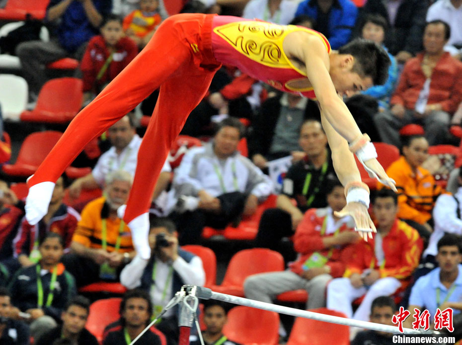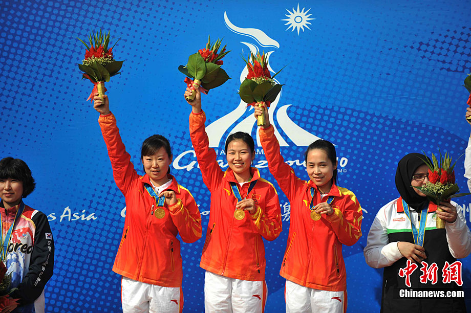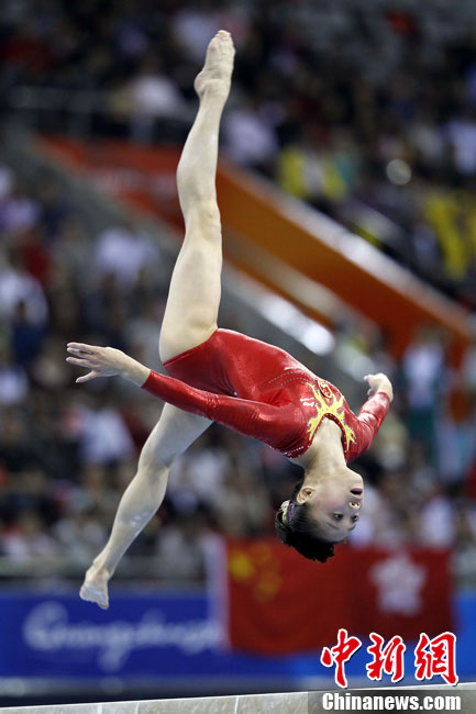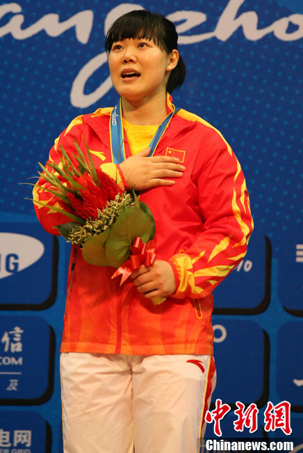 11月17日,廣州亞運(yùn)會跆拳道比賽中,中國選手吳靜鈺戰(zhàn)勝日本選手笠原江梨香獲得女子49公斤以下級冠軍。中新社記者 杜洋 攝