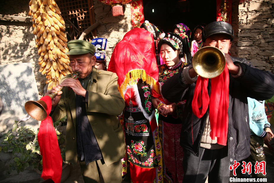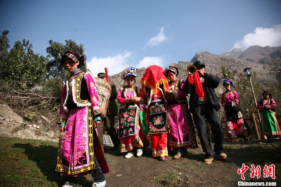 近日,四川省阿壩藏族羌族自治州理縣境內(nèi)的桃坪羌寨舉行傳統(tǒng)婚禮,羌族小伙子楊韋和羌族姑娘張艷菊結(jié)為夫妻,一大早迎親隊(duì)伍便抵達(dá)羌寨準(zhǔn)備將新娘迎接到九寨溝。羌族人,自稱(chēng)爾瑪人,主要分布于四川省阿壩藏族羌族自治州東部、綿陽(yáng)北川縣等地,羌族人有著悠久的傳統(tǒng)文化、原始宗教和生活習(xí)性。目前只有少數(shù)羌族人還保留著羌族傳統(tǒng)婚禮習(xí)俗,滿漢婚禮的“小定、大定、彩禮、提親”程序逐漸融入當(dāng)?shù)貍鹘y(tǒng)。