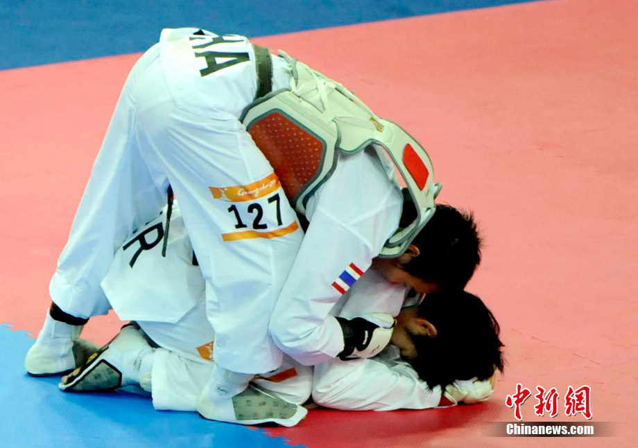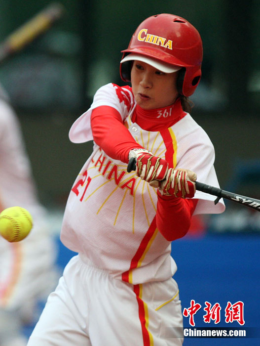 11月20日,廣州亞運(yùn)會(huì)壘球預(yù)賽第5場,中國隊(duì)以9比0戰(zhàn)勝泰國隊(duì),取得預(yù)賽2連勝。中國隊(duì)譚瑛揮棒擊球。中新社記者 湯彥俊 攝