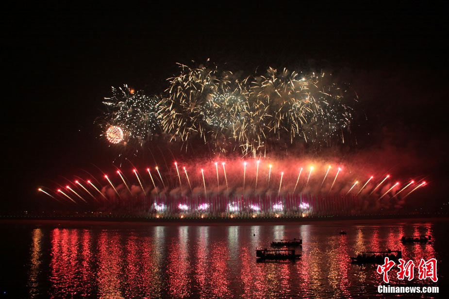 袁隆平院士手持稻穗躬身田間,身后是稻浪、青山和綠水相依相偎……11月20日晚8時(shí),以“盛世農(nóng)博、光耀中部”為主題的專場(chǎng)音樂焰火晚會(huì)在長(zhǎng)沙橘子洲頭焰火廣場(chǎng)燃放,為世人所熟悉的袁隆平在稻田間凝神工作場(chǎng)景以煙花素描的形式首現(xiàn)夜空。在22分鐘的燃放時(shí)間里,為市民奉獻(xiàn)了《致敬!袁隆平》、《神奇熱土》、《奮力耕耘》、《輝煌成果》、《燦爛前程》5個(gè)精彩篇章。當(dāng)晚的音樂煙火首次以展現(xiàn)紀(jì)實(shí)人物山水畫面、日景煙花首次燃放夜空。其中袁隆平院士在實(shí)驗(yàn)田里工作的場(chǎng)景通過一組45米×30米的造型圖案煙花再現(xiàn),有逾3萬發(fā)煙花生動(dòng)打造袁隆平的逼真神態(tài),造型圖案煙花畫面中的稻田從綠到黃,從播種到收獲的動(dòng)態(tài)場(chǎng)景讓觀賞的市民大嘆“驚艷”。 楊華峰 攝