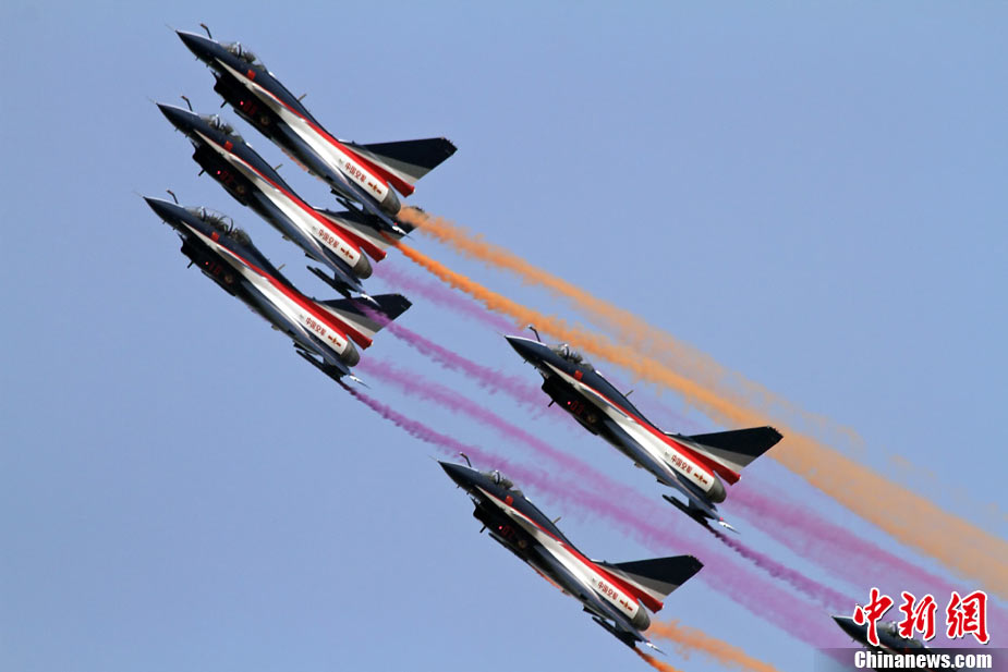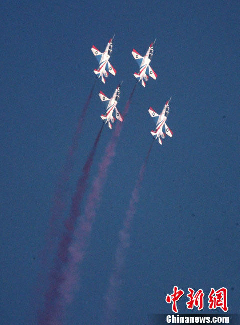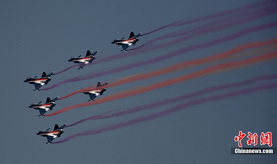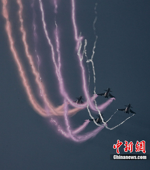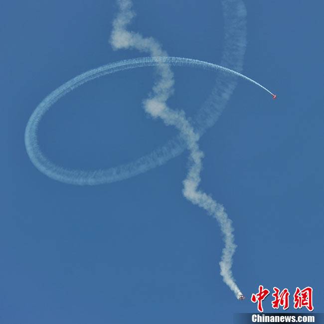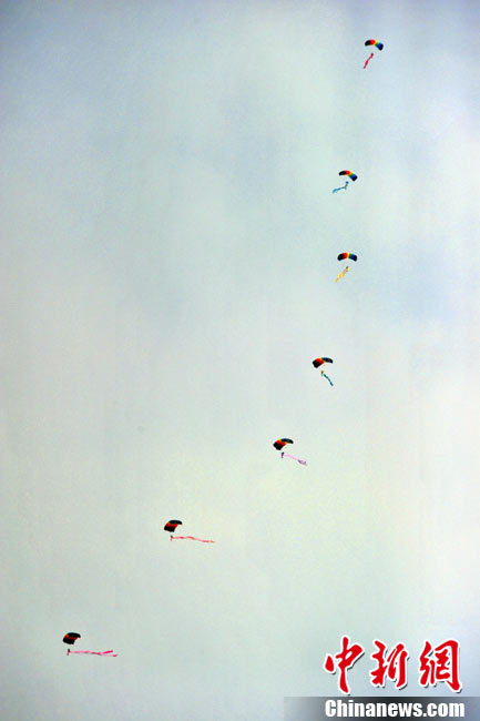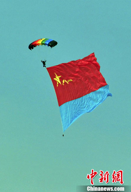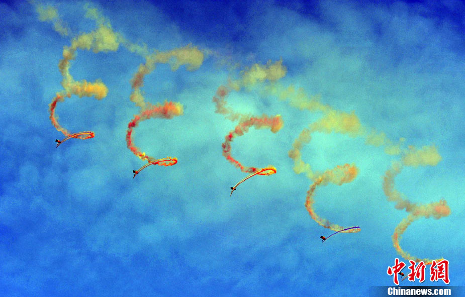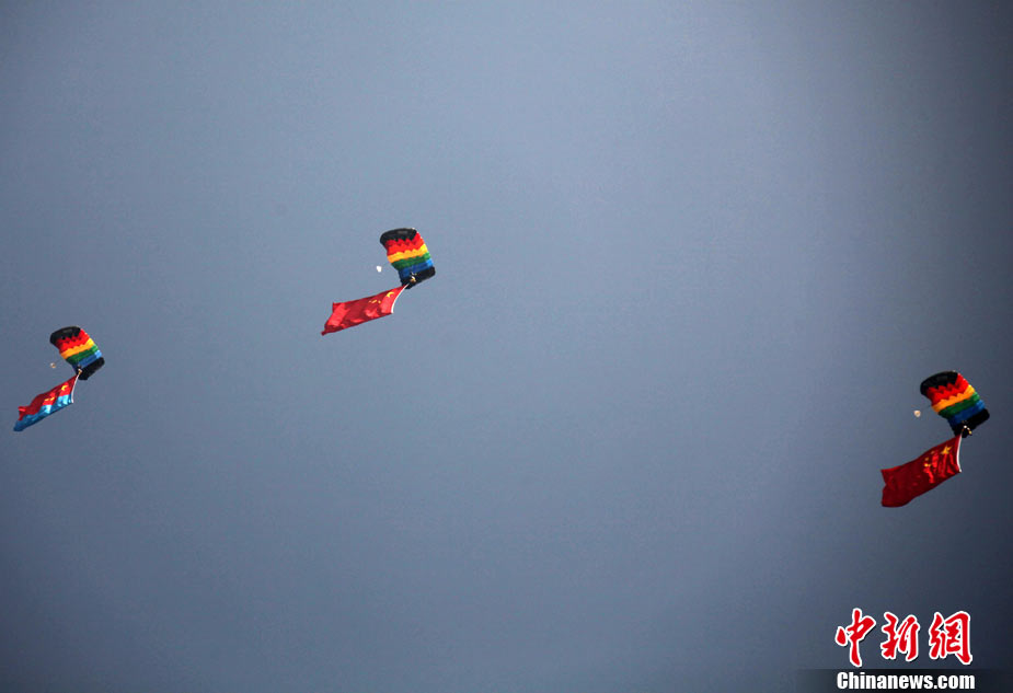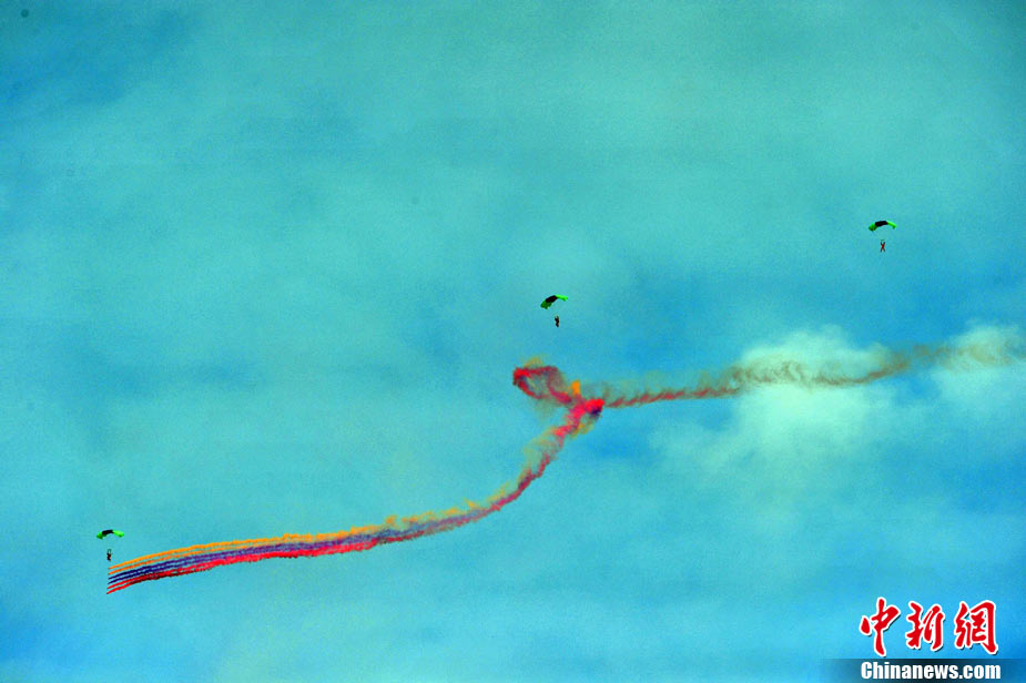 11月21日,中國空軍“八一”跳傘隊進行了最后一場精彩的跳傘表演。當天,為期六天的第八屆中國航展在珠海圓滿落幕。中新社發(fā) 張申生 攝 圖片來源:CNSPHOTO