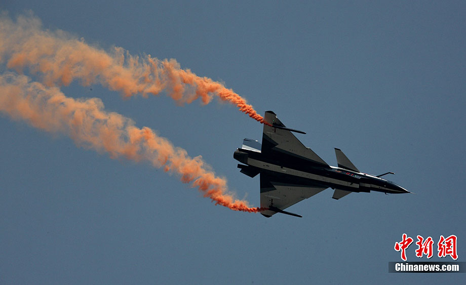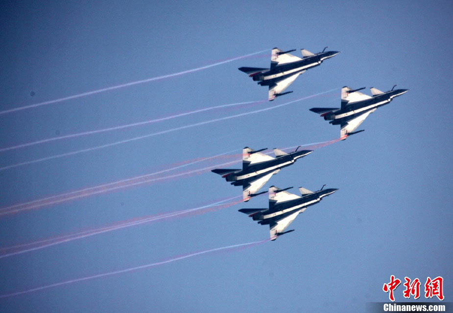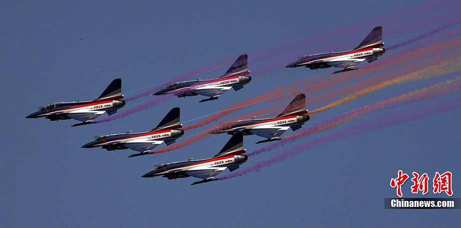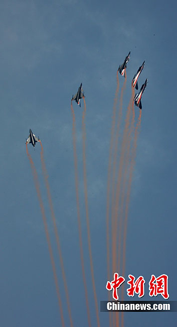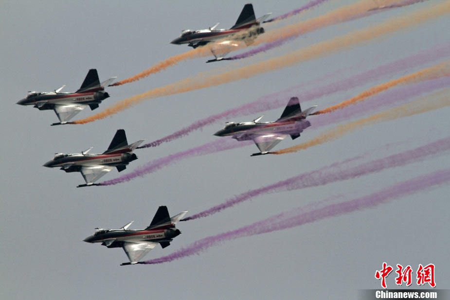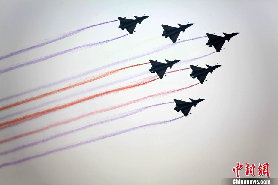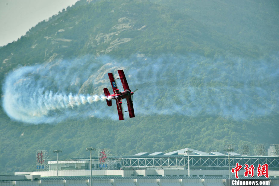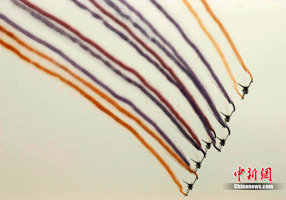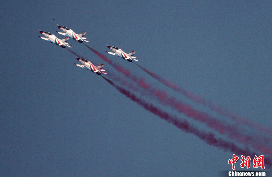 11月21日,中國空軍“八一”跳傘隊進行了最后一場精彩的跳傘表演。當天,為期六天的第八屆中國航展在珠海圓滿落幕。中新社發(fā) 張申生 攝 圖片來源:CNSPHOTO