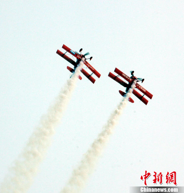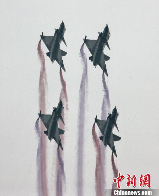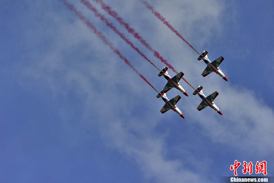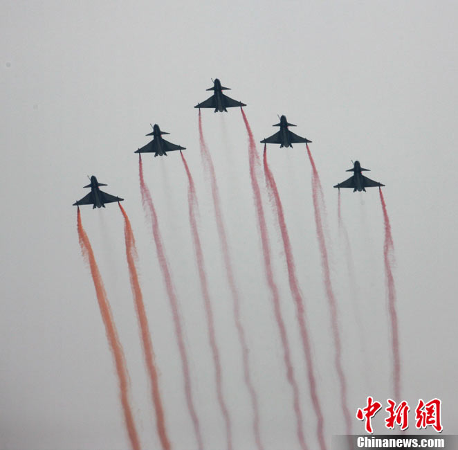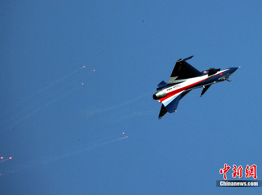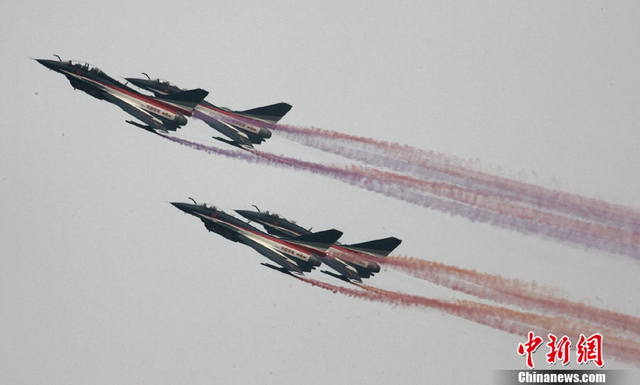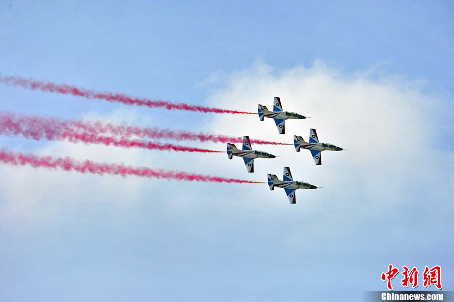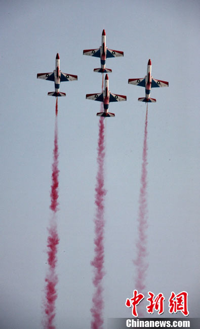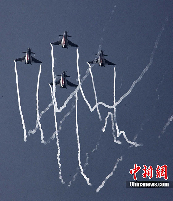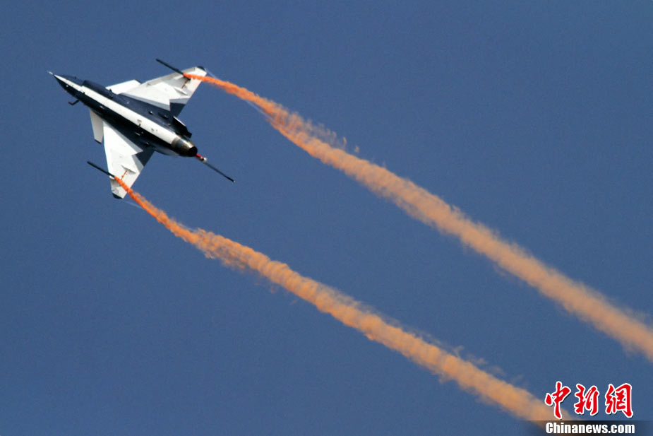 11月21日,中國空軍“八一”跳傘隊進行了最后一場精彩的跳傘表演。當天,為期六天的第八屆中國航展在珠海圓滿落幕。中新社發(fā) 張申生 攝 圖片來源:CNSPHOTO