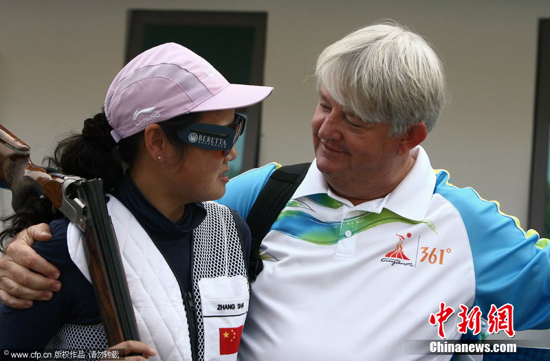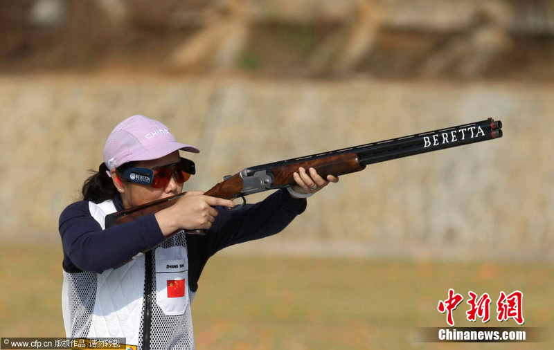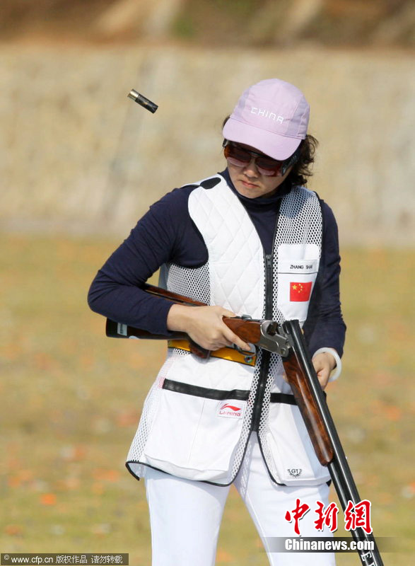 2010年11月23日,廣州亞運(yùn)會(huì)射擊女子雙向飛碟賽場,由張山、魏寧、魏萌組成的中國隊(duì),以較大的優(yōu)勢奪冠?钢袄蠘尅鄙详嚨膹埳,是唯一參加過在中國舉辦的兩屆亞運(yùn)會(huì)的運(yùn)動(dòng)員。她甚至放言要參加倫敦奧運(yùn)會(huì)。圖片來源:cfp視覺中國