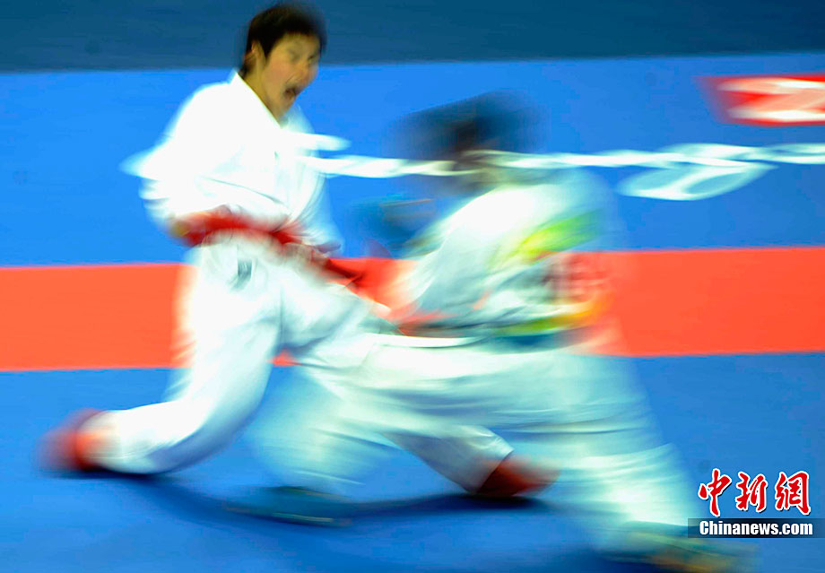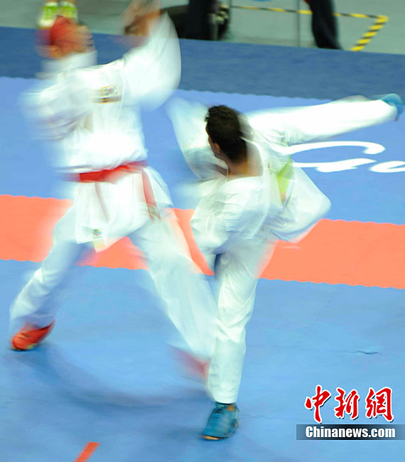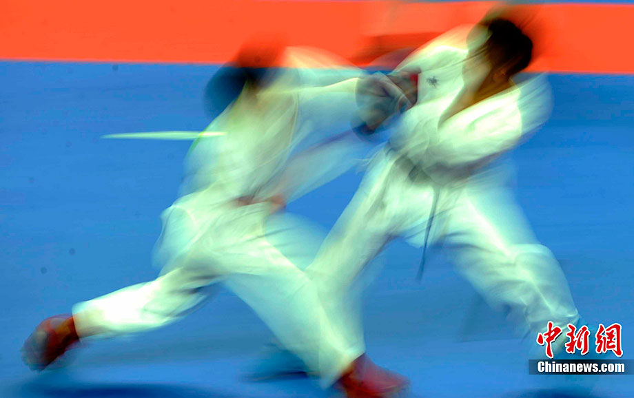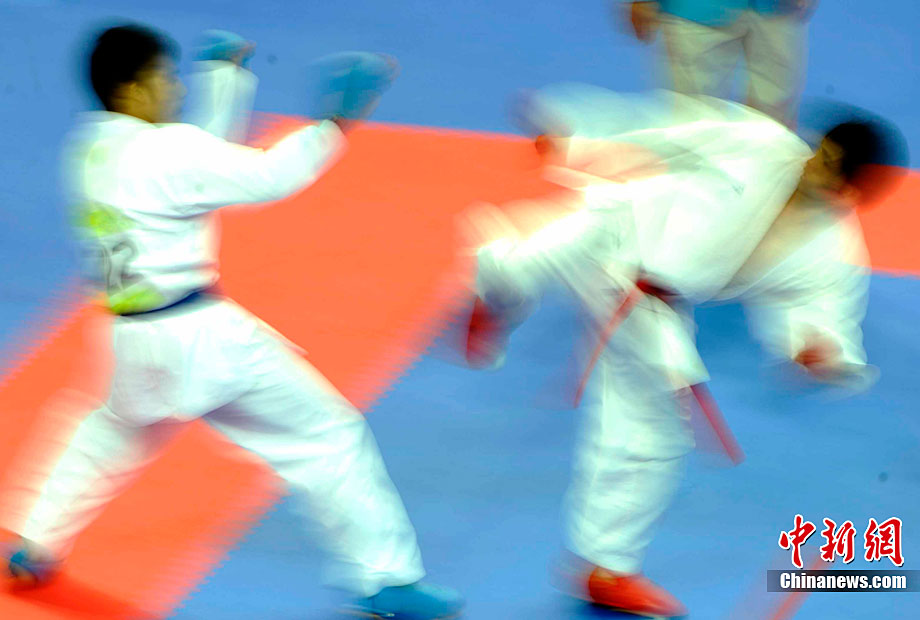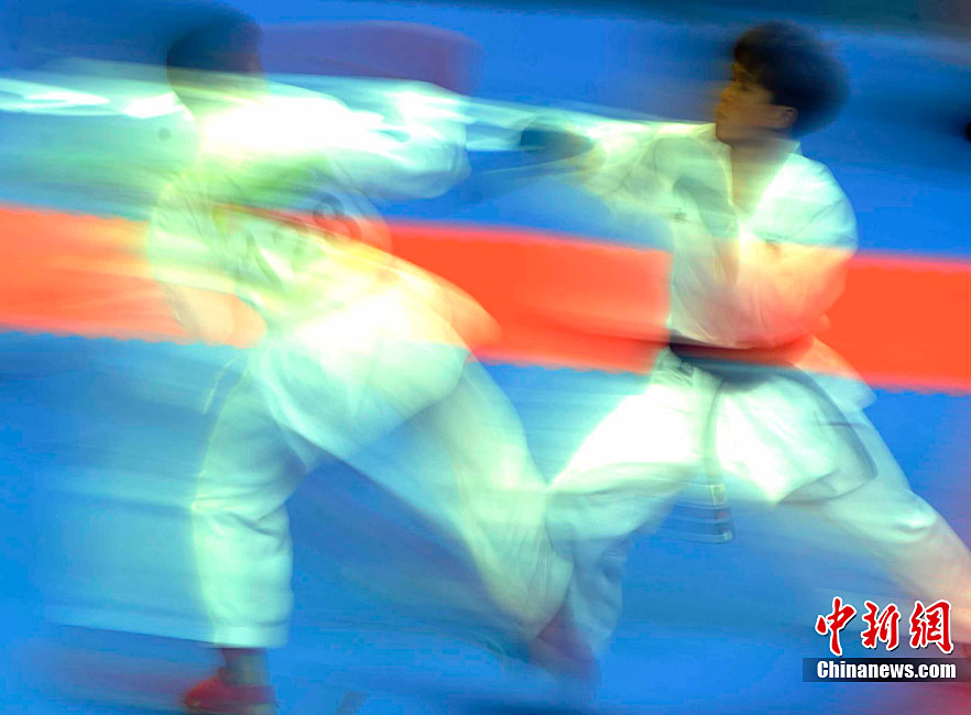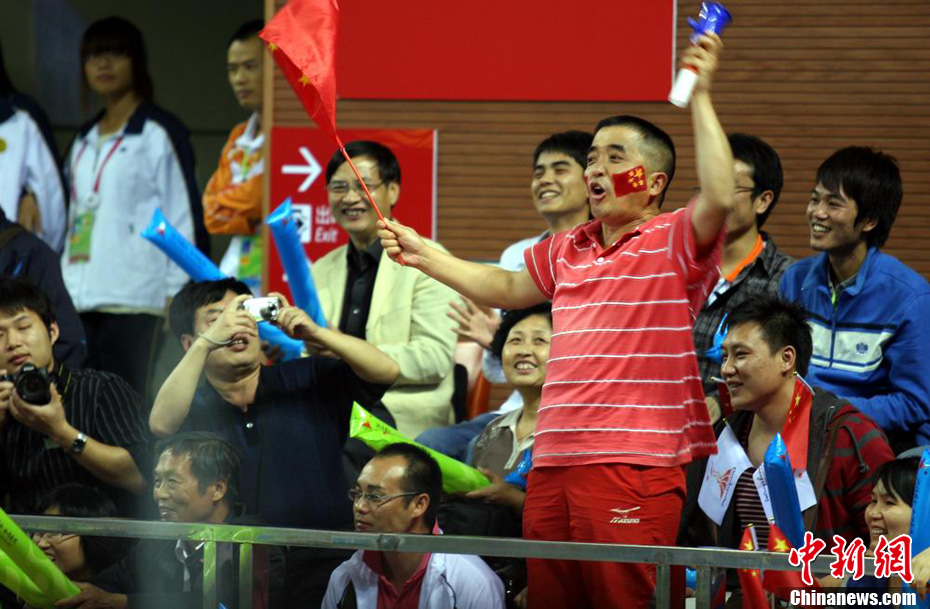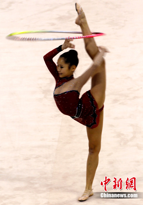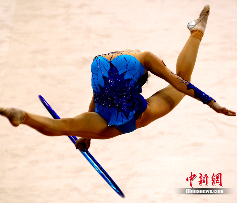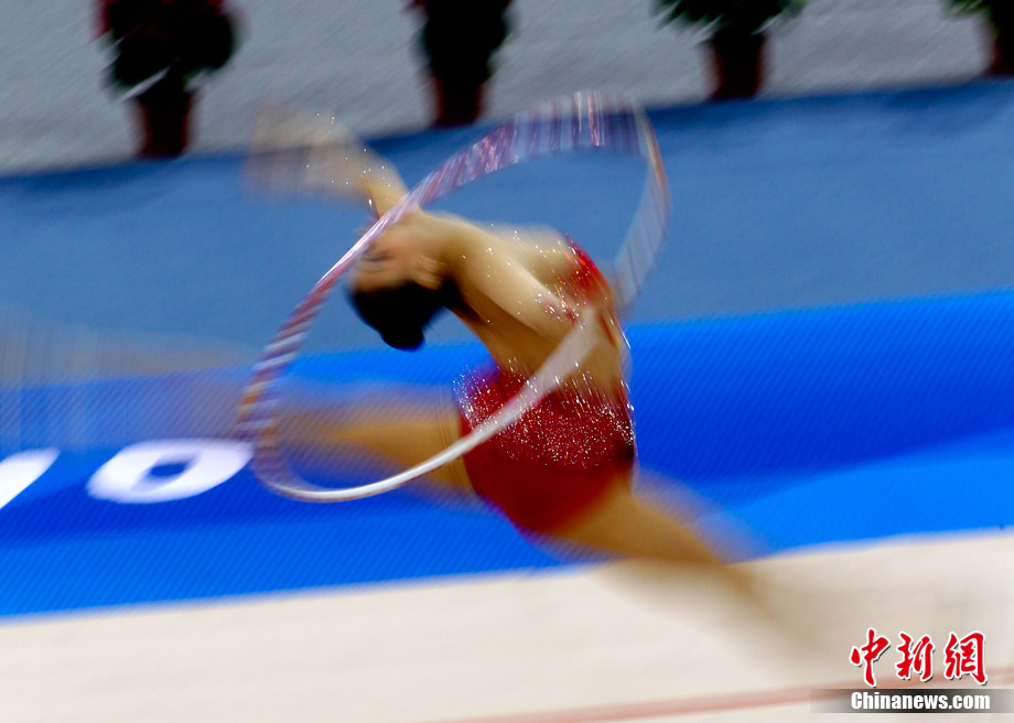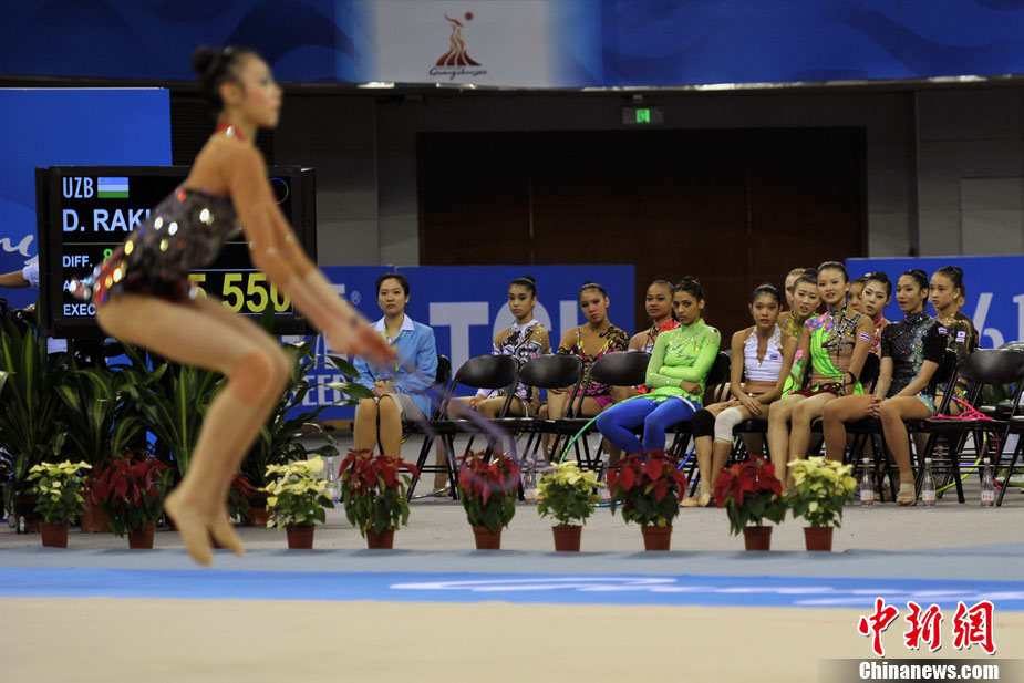 11月25日上午,廣州亞運會藝術(shù)體操個人、團體決賽在亞運城體育館開賽。圖為中國選手在比賽中,場下的各國運動員聚精會神的觀看對手表現(xiàn)。 中新社記者 金碩 攝