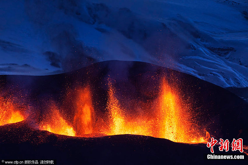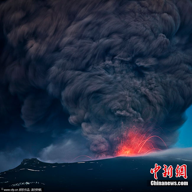 11月26日消息,冰島埃亞菲亞德拉冰蓋火山4月14日爆炸性噴發(fā),火山口源源不斷噴出煙塵,在7000 米以上高空形成火山灰云團(tuán),并因風(fēng)向迅速飄往歐陸,堪稱多年來歐洲破壞力最大的天災(zāi)。冰島攝影師羅格納·西古德森和地理學(xué)家Ari Trausti Gudmundsson卻選擇冒著生命危險(xiǎn)深入火山災(zāi)區(qū),通過影像記錄下這場200年不遇的火山大噴發(fā),并且集結(jié)成冊發(fā)成了一本書。圖片來源:CFP視覺中國