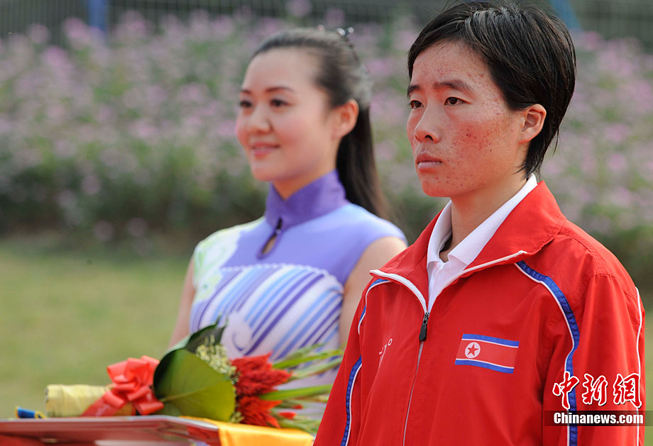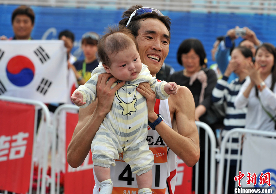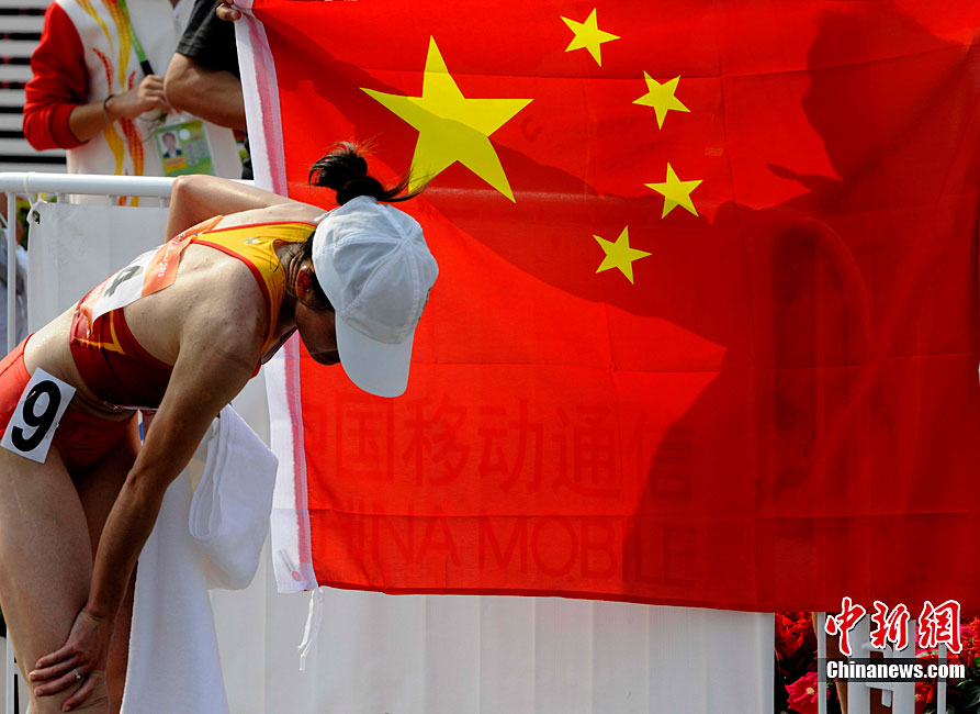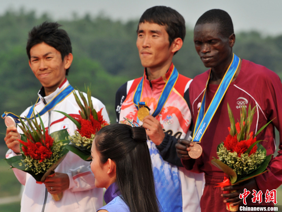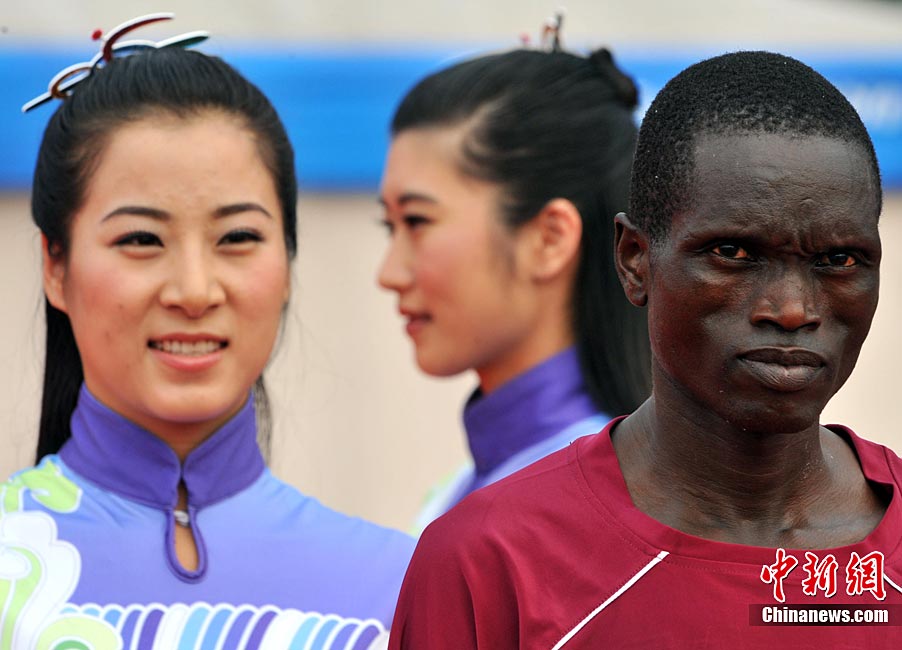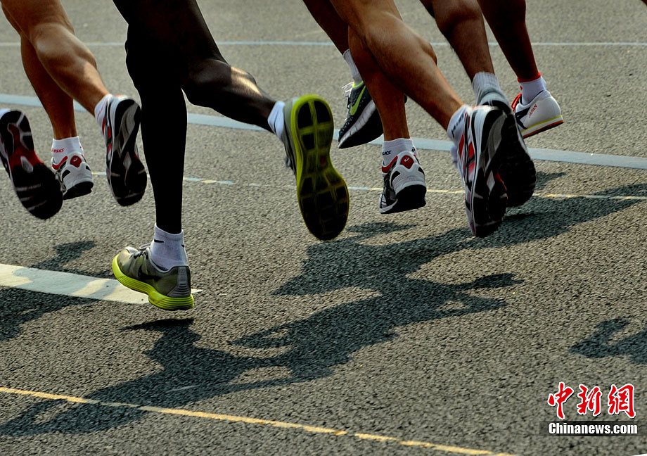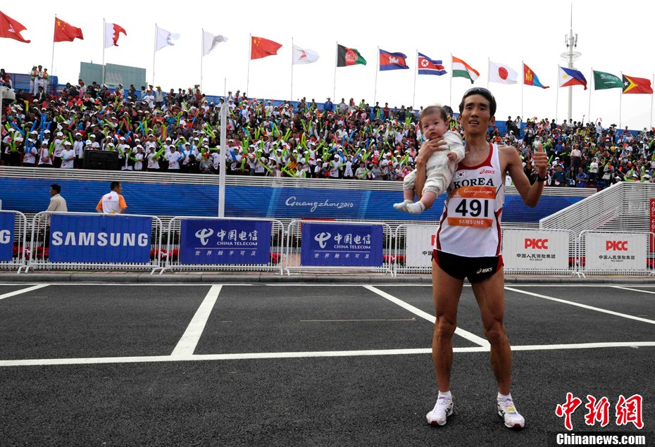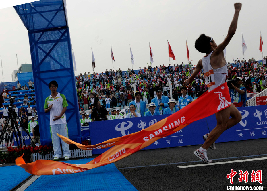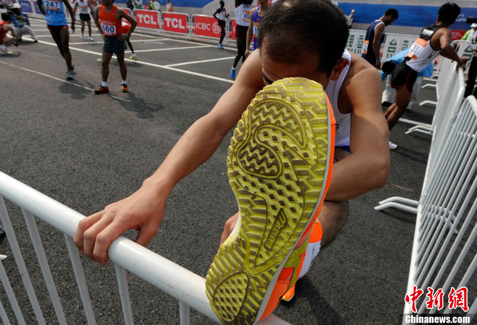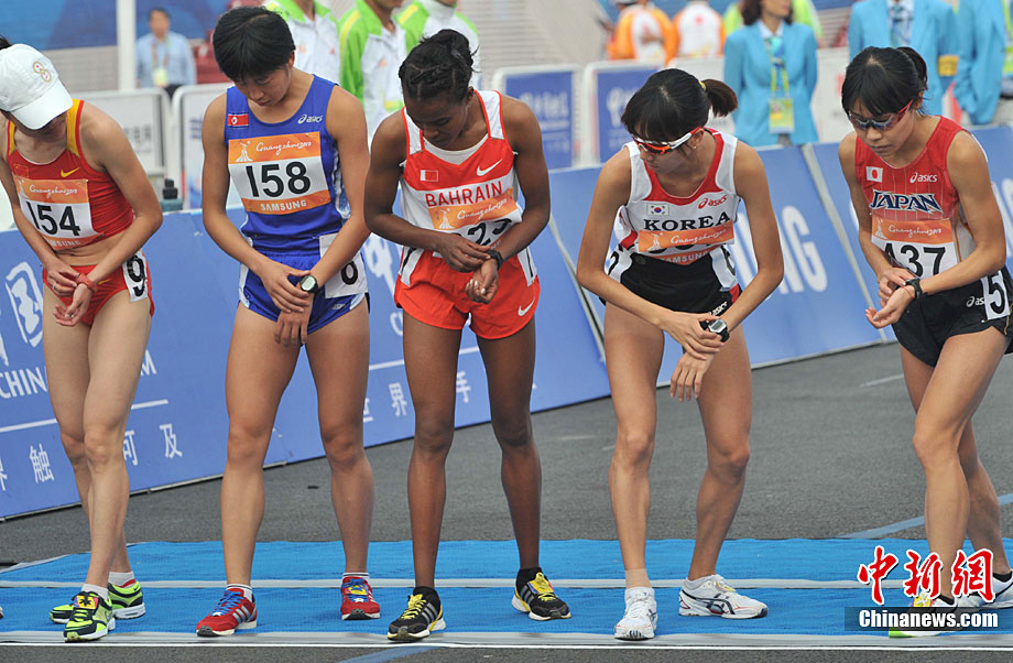 11月27日,廣州亞運(yùn)會最后一天的馬拉松比賽在艷陽天里舉行,中午開始的男子賽事出現(xiàn)多名選手累倒和受傷。圖為一名蒙古選手累倒后被醫(yī)護(hù)志愿者送院治療。中新社記者 賈國榮 攝