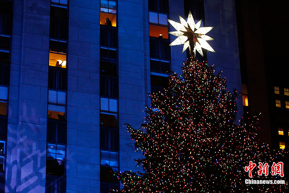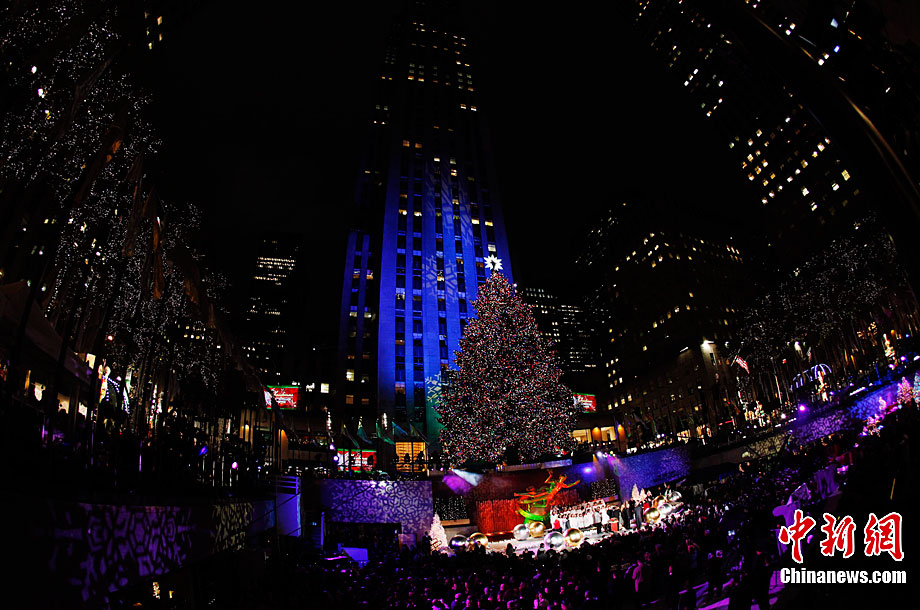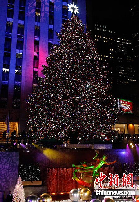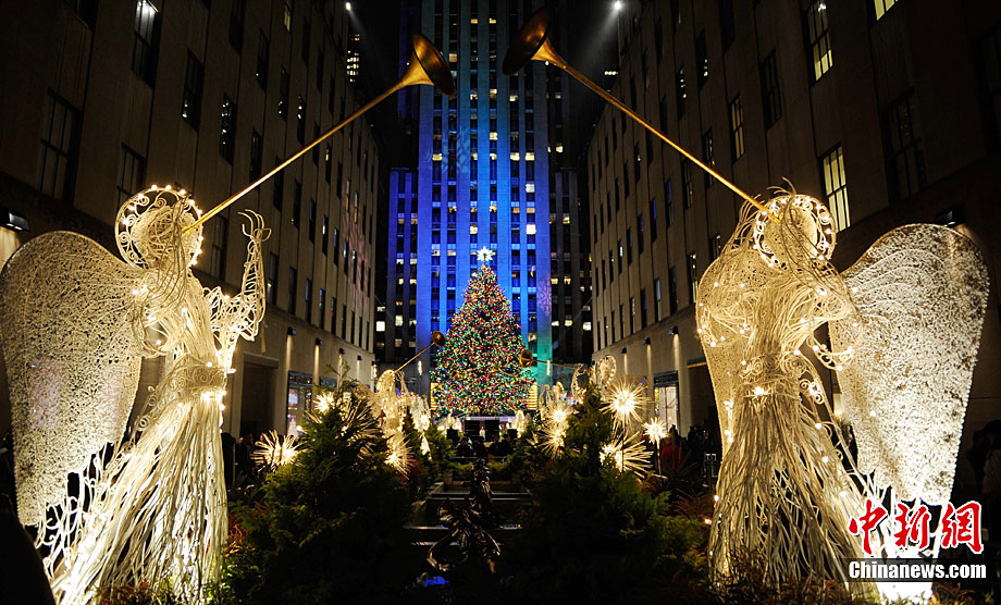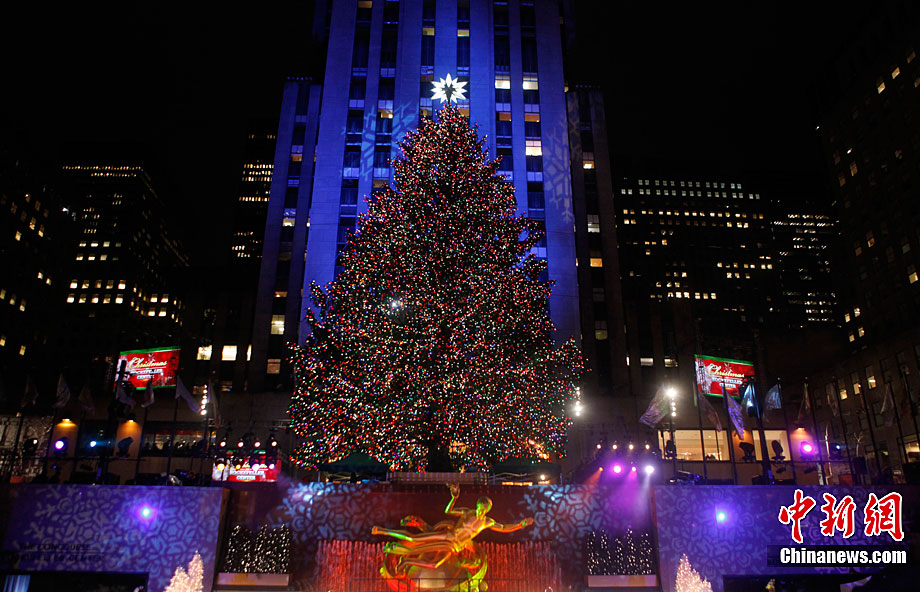 紐約洛克菲勒中心廣場圣誕樹正式點(diǎn)亮