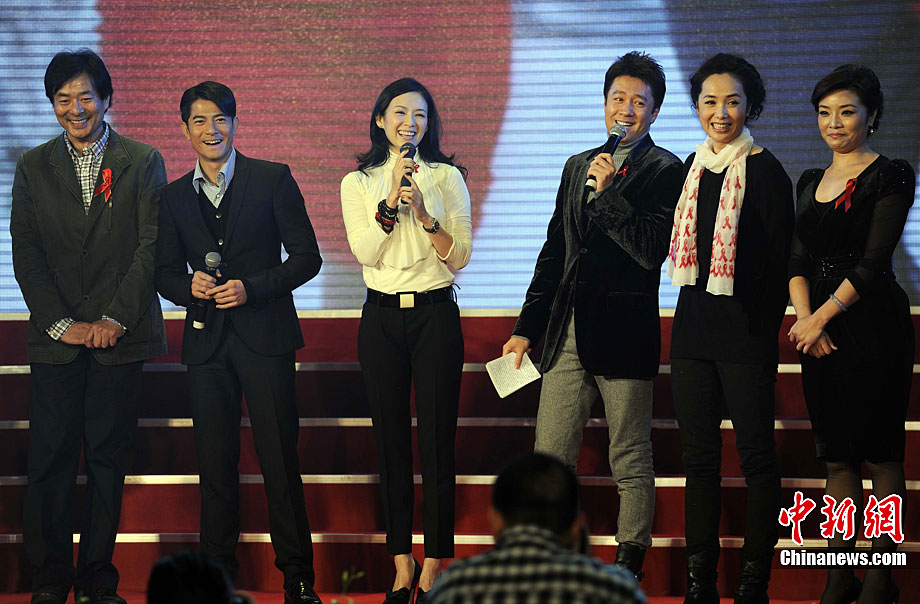 12月1日是“世界艾滋病日”,今年的主題是:遏制艾滋,履行承諾。世界艾滋病日宣傳活動走進校園暨艾滋病題材紀錄片《在一起》首映式在北京外國語大學舉行,顧長衛(wèi)、蔣雯麗、濮存昕、章子怡、郭富城等與首都十幾所大學的學生觀看首映式。中新社記者 劉震 攝