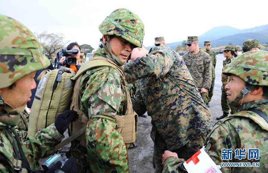 當日,日本陸上自衛(wèi)隊與美國海軍陸戰(zhàn)隊在霧島演習場舉行地面戰(zhàn)聯(lián)合訓(xùn)練開始儀式。此次訓(xùn)練共有日本陸上自衛(wèi)隊550人、美國海軍陸戰(zhàn)隊230人參加。季春鵬攝 圖片來源:新華網(wǎng)