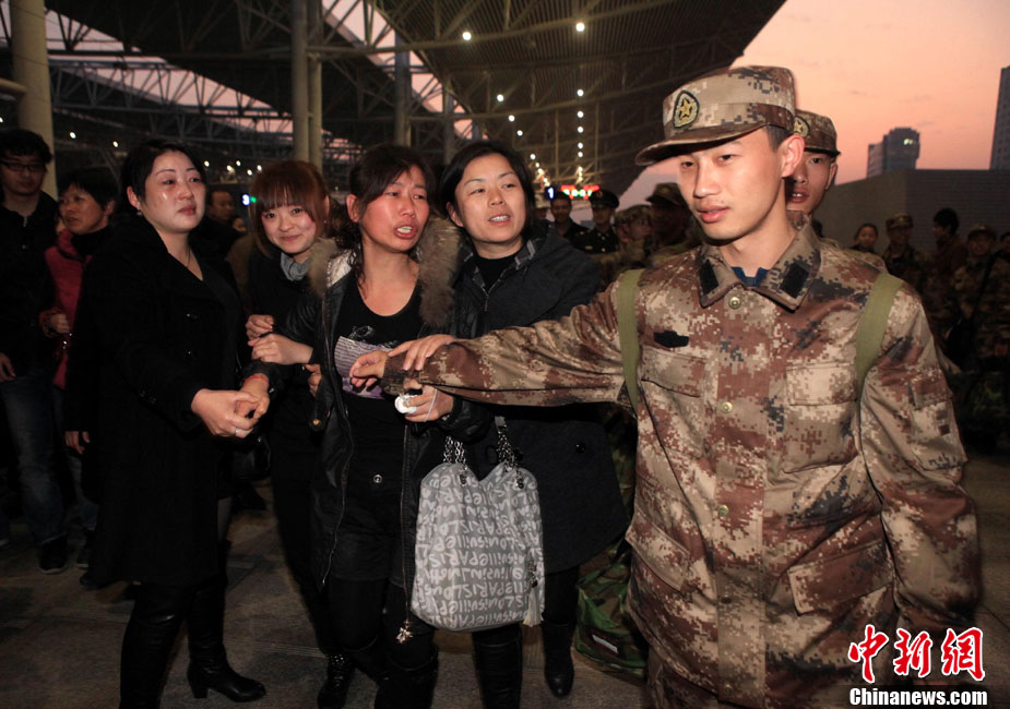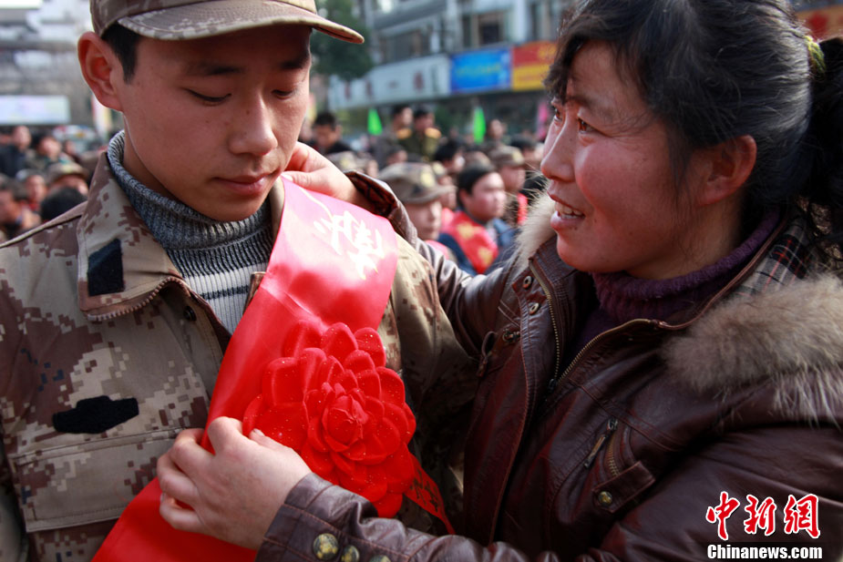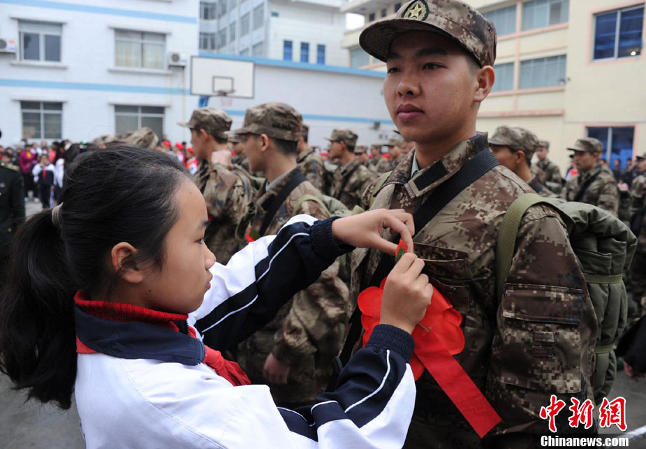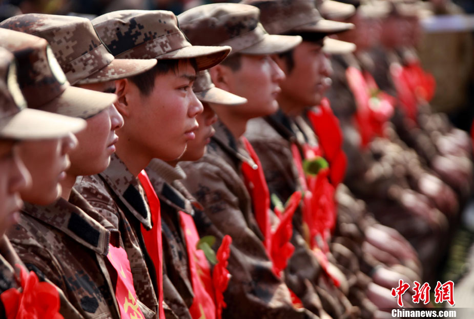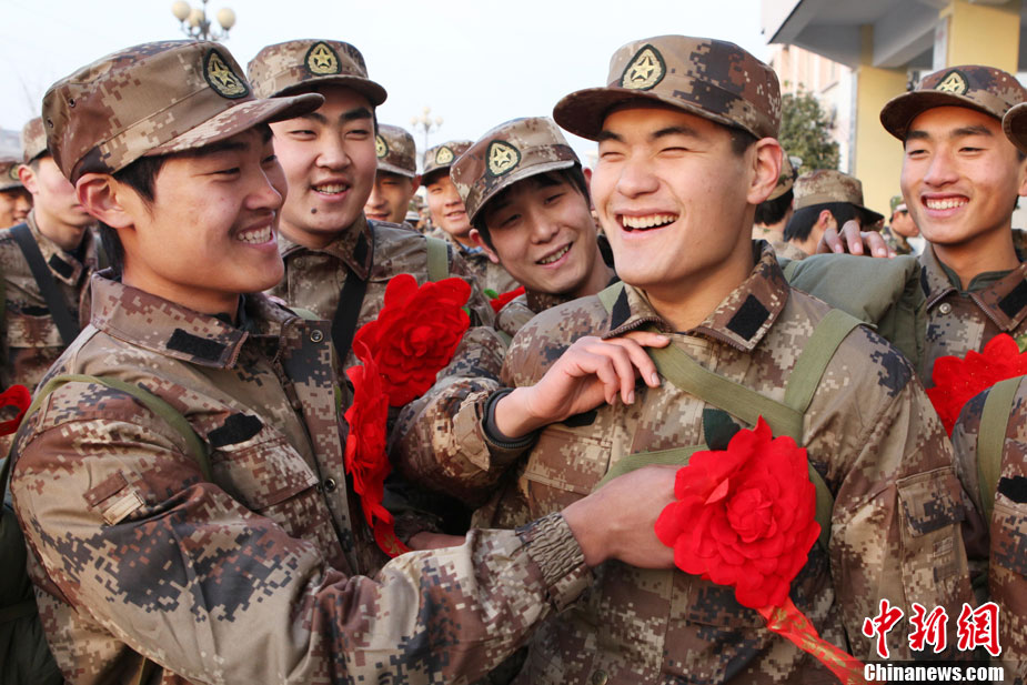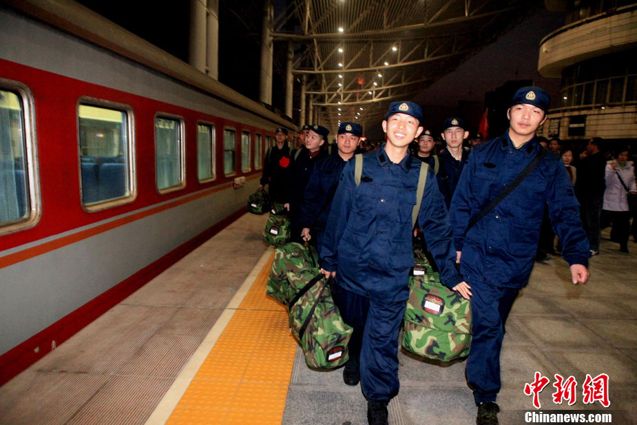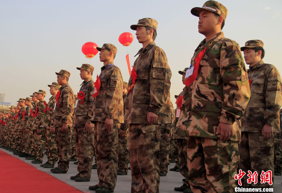 12月10日,北京市在西客站舉行隆重的歡送首批新兵儀式。來自東城、西城、朝陽、海淀等14個(gè)區(qū)的500名新戰(zhàn)士身穿軍裝,胸帶紅花,即將奔赴四川、陜西、湖北、河北等地軍營(yíng)。北京市征召的新兵中,高校畢業(yè)生和在校生超過了三分之一。