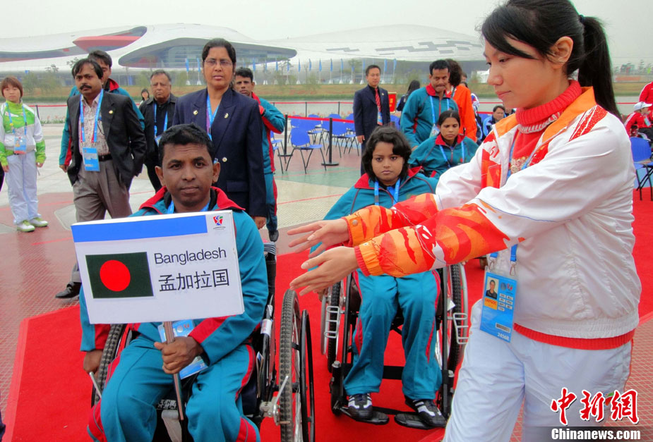 2010廣州亞殘運會將于12月12日晚開幕,本屆運動會吉祥物“芬芬”怡人可愛。 “芬芬”意即花之芬芳,清香襲人,五片舞動的花瓣、一張燦爛的笑臉,體現(xiàn)出參與者的歡樂,寓于運動的殘奧理念。
