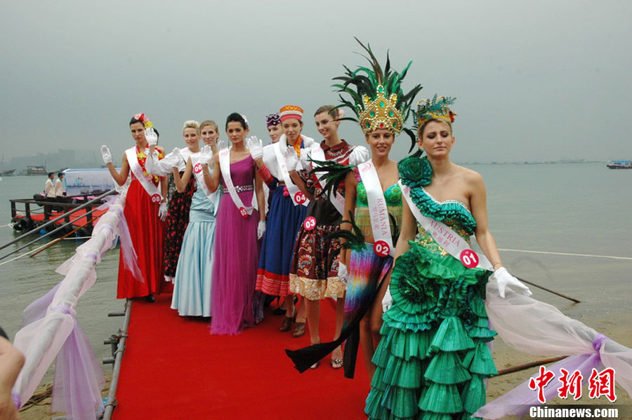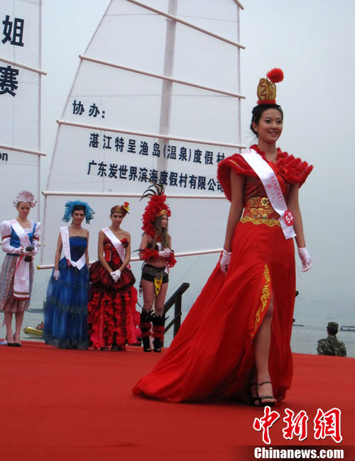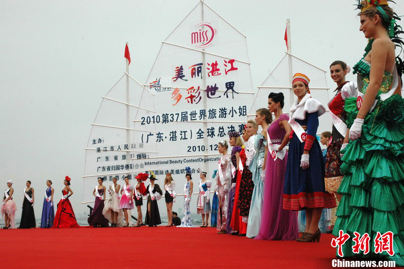 12日上午,第37屆世界旅游小姐全球總決賽開幕式在廣東湛江舉行;顒(dòng)期間,來自各個(gè)國(guó)家和地區(qū)的53名旅游佳麗,將進(jìn)行巡游、展演及泳裝、民族服裝、晚裝表演、才藝問答等環(huán)節(jié)比賽,最后評(píng)出世界旅游小姐全球總決賽冠、亞、季軍。中新社記者 梁盛 攝