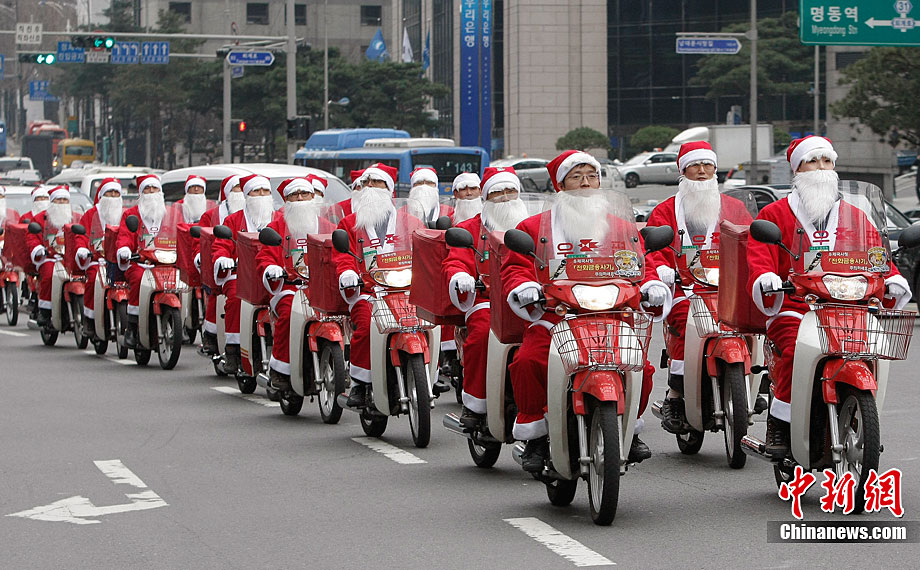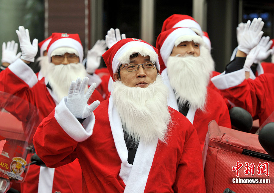 當(dāng)?shù)貢r(shí)間12月13日,韓國(guó)首爾中央郵局舉行“圣誕老人 愛(ài)的信使”儀式。郵遞員變身“圣誕老人”送郵件,迎接圣誕節(jié)的到來(lái)。