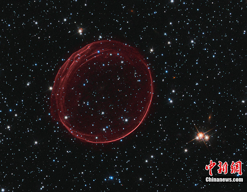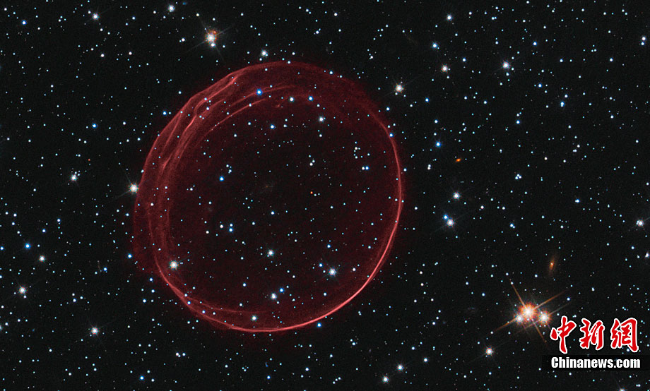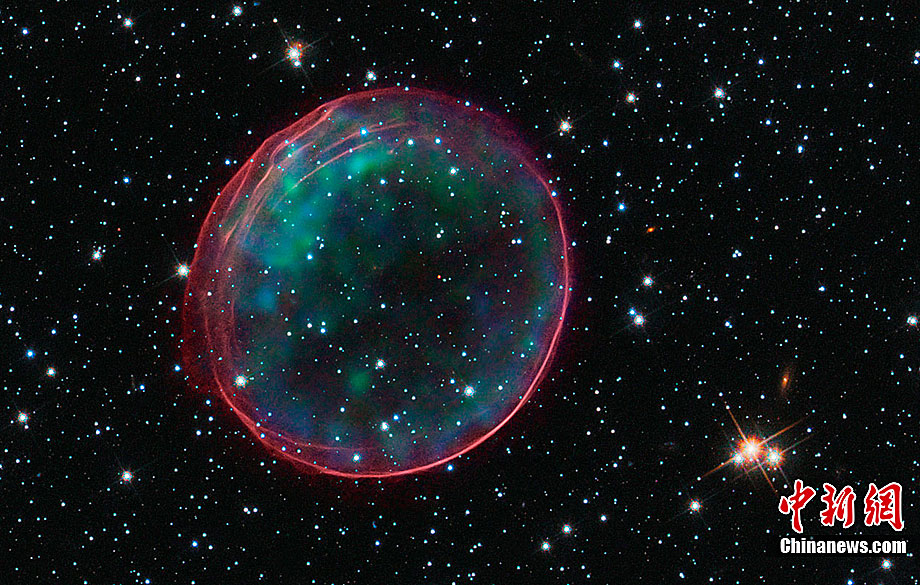 近日,美國(guó)哈勃太空望遠(yuǎn)鏡拍攝到了美麗的星系間“圣誕大氣泡”的照片。這個(gè)“圣誕大氣泡”是由400年前發(fā)生的超新星爆炸的殘骸形成的,它像一個(gè)精致的“殼”一樣漂浮在太空中。據(jù)悉,這個(gè)“圣誕大氣泡”是我們的臨近星系——大麥哲倫星云(Large Magellanic Cloud)中的一顆超新星在爆炸時(shí)發(fā)出的沖擊波及其噴射出來(lái)的物質(zhì) ,大麥哲倫星云與地球的距離為16萬(wàn)光年。科學(xué)家們將這個(gè)“圣誕大氣泡”氣圈命名為“SNR B0509-67.5”或者縮寫成“SNR 0509”。據(jù)悉,這個(gè)如氣泡狀的氣圈的直徑為23光年,并且正在以超過(guò)1100萬(wàn)千米每小時(shí)的速度擴(kuò)散。另外,哈勃太空望遠(yuǎn)鏡拍攝到了“圣誕大氣泡”處于各種不同情況下的照片。