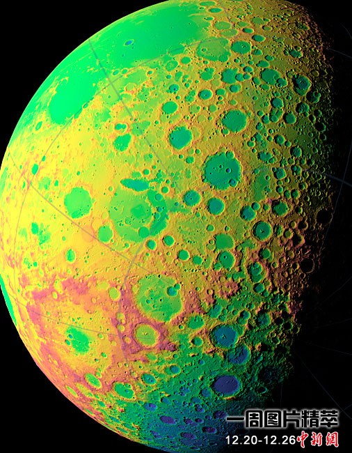 近日,美國(guó)航天局對(duì)外公布了月球勘測(cè)軌道飛行器攜帶的月球軌道飛行器激光測(cè)高儀(LOLA)對(duì)該地點(diǎn)進(jìn)行的高度測(cè)量?茖W(xué)家稱,月球勘測(cè)軌道飛行器使研究者能制造出最精確且最完整的月球地形圖。紅色代表月球最高點(diǎn),藍(lán)色代表最低點(diǎn)。