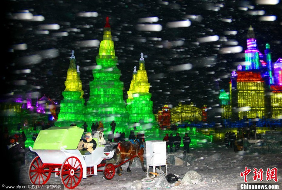 2010年12月25日,哈爾濱,第十二屆哈爾濱冰雪大世界試開園,首日迎接中外游客2萬余人。圖片來源:CFP/視覺中國
