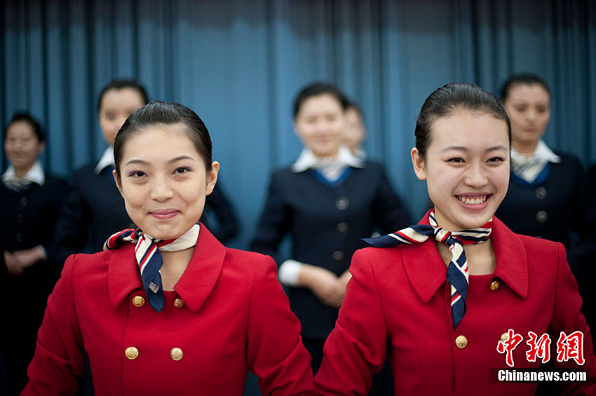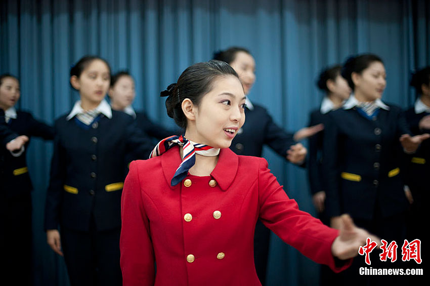 再過(guò)兩周,北京地區(qū)將較全國(guó)提前10天開(kāi)始進(jìn)入春運(yùn)階段。為迎接春運(yùn),北京地區(qū)加開(kāi)了至重慶、成都等地的動(dòng)車組。24日,新一批動(dòng)車組乘務(wù)員在石家莊接受完封閉培訓(xùn),將在春運(yùn)前走上崗位?崴瓶战愕膭(dòng)車組女乘務(wù)員,一顰一笑皆有規(guī)矩,給旅客帶來(lái)良好感覺(jué)的背后,是艱苦的訓(xùn)練。張沫 攝 圖片來(lái)源:CFP視覺(jué)中國(guó)