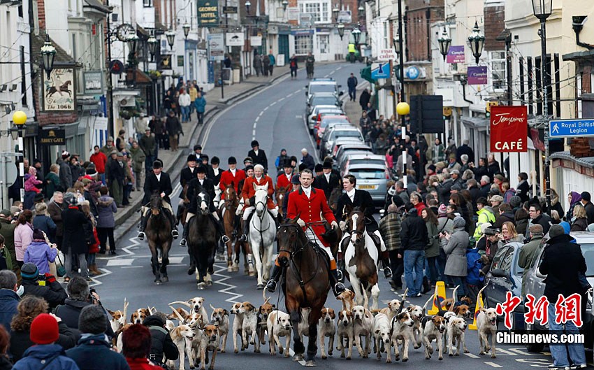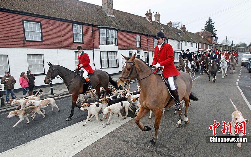 當(dāng)?shù)貢r(shí)間12月27日,英格蘭東南部肯特郡舉行了盛大的節(jié)禮日狩獵活動(dòng)開幕式。眾多英國傳統(tǒng)狩獵愛好者攜帶獵犬參加了這一活動(dòng)。