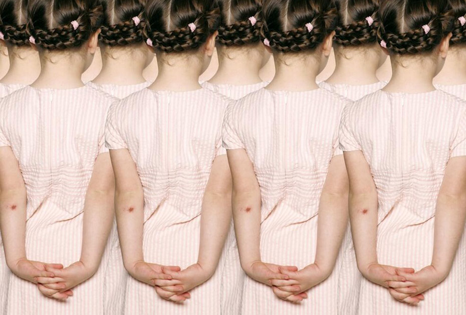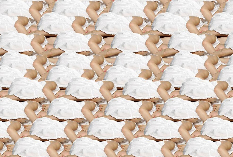 德國藝術(shù)家、攝影師Claudia Rogge,他非常癡迷圖案造型,也許你喜歡的圖案是類似于花紋或者墻紙那種,但他卻喜歡用人來組合圖案造型。他的這種癡迷促使他完成這個大手筆的制作:大量的模特擺著相似的姿勢,穿著相同的衣服,組成了稍顯恐怖的人體圖案。不可否認(rèn)的是,他的部分作品使用了后期特效。