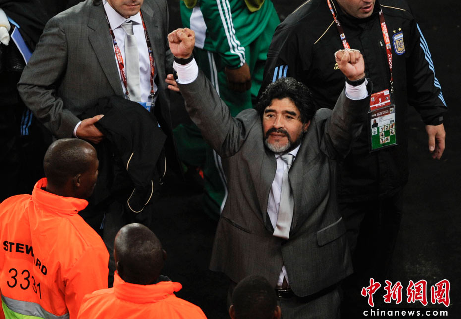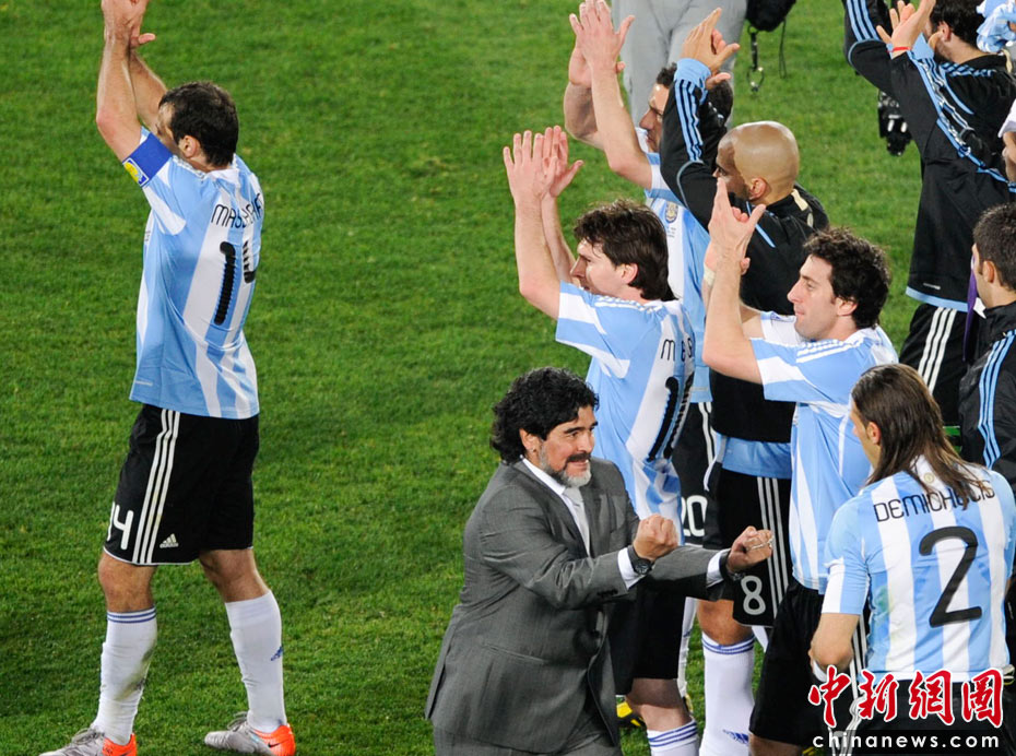 關(guān)注馬拉多納,期待梅西,阿根廷隊在南非世界杯上的首演沒有令等待他們的球迷失望,1比0擊敗非洲勁旅尼日利亞隊,“潘帕斯雄鷹”再添奪冠底氣。中新社記者 廖攀 攝
