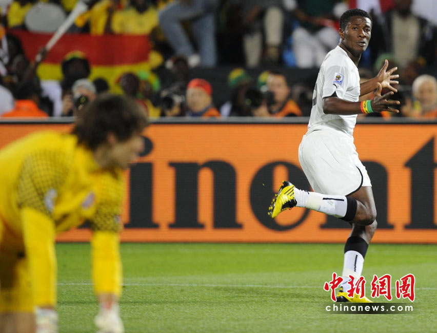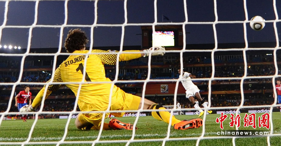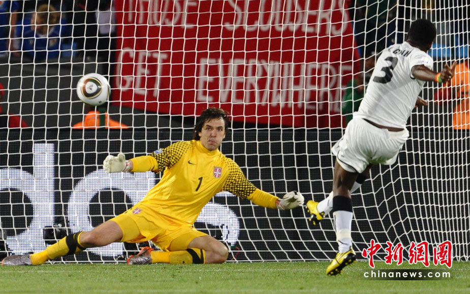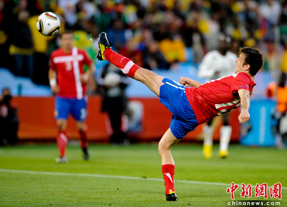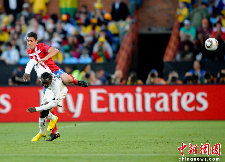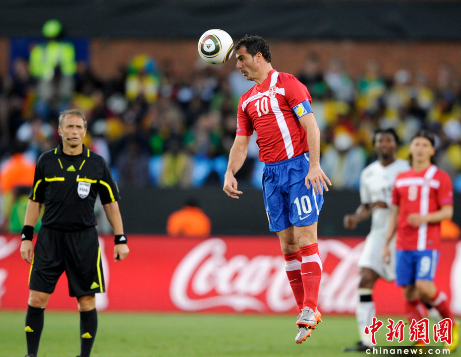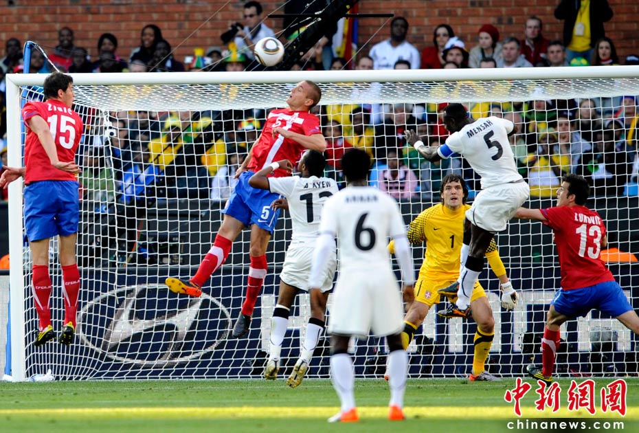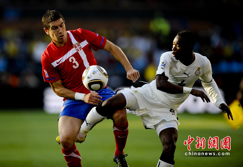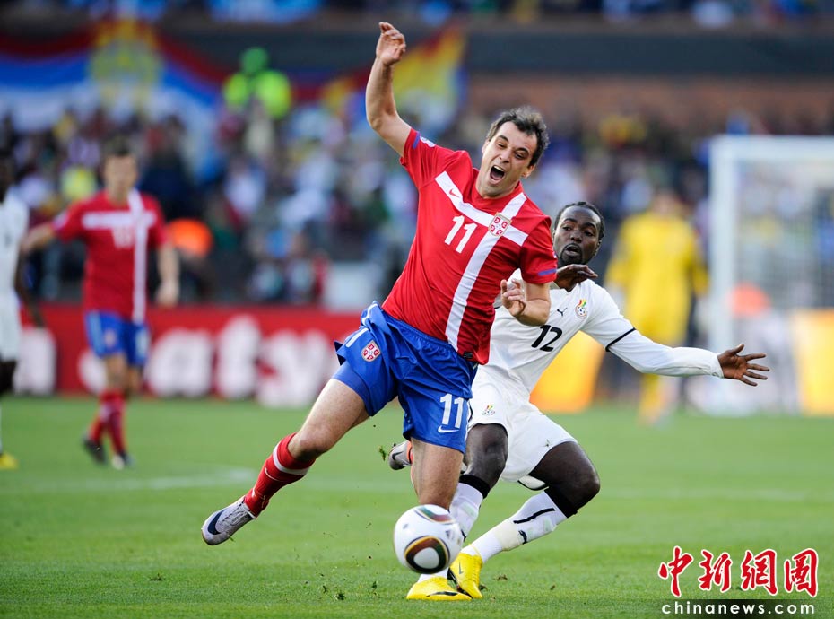 6月13日,南非世界杯D組小組賽在比勒陀利亞洛夫托斯球場(chǎng)舉行,在上半場(chǎng)比賽中塞爾維亞與加納隊(duì)展開激烈爭(zhēng)奪。 中新社記者 廖攀 攝