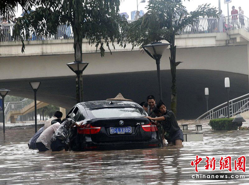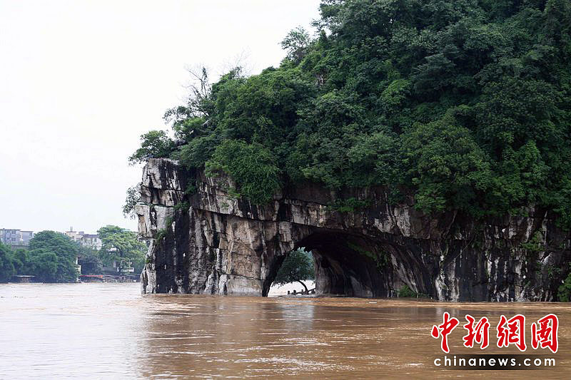 桂林暴雨漓江水漫市區(qū) 積水嚴(yán)重街道可劃竹排