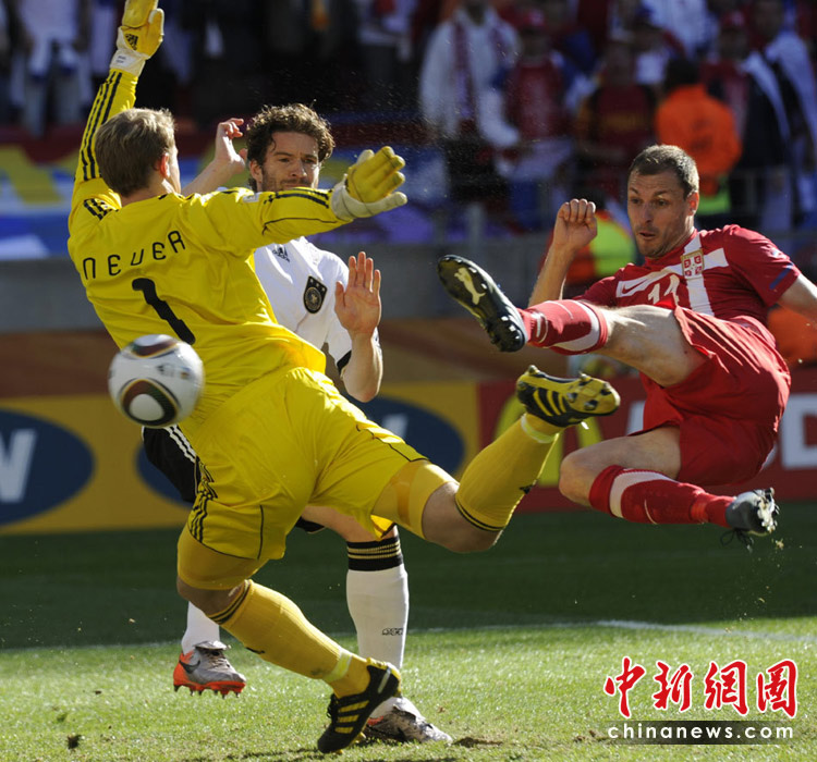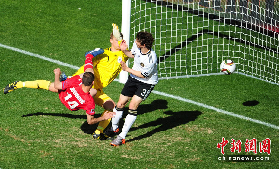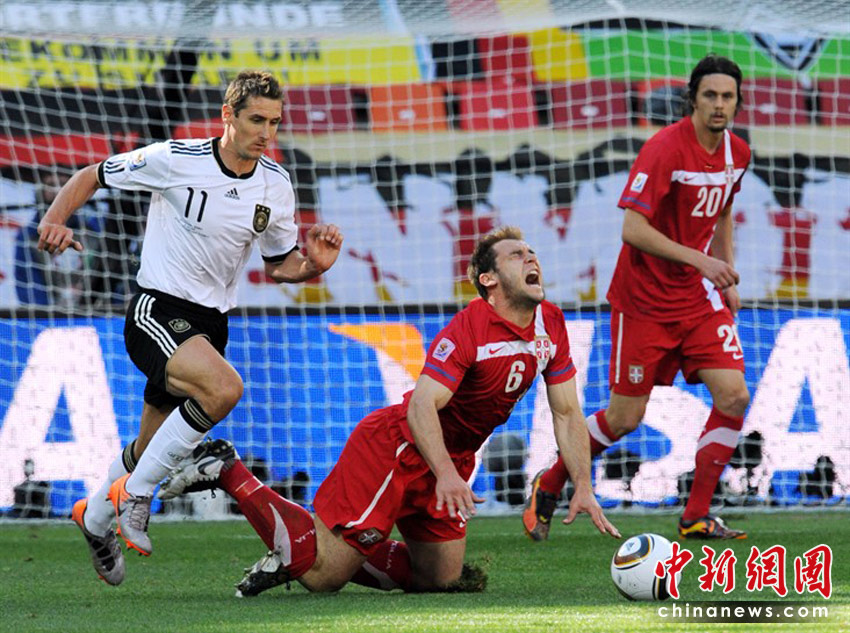 北京時(shí)間6月18日晚19:30分,世界杯小組賽D組德國(guó)迎戰(zhàn)塞爾維亞。德國(guó)前鋒克洛澤累計(jì)兩張黃牌被罰下場(chǎng),比賽38分鐘塞爾維亞隊(duì)約萬(wàn)諾維奇頭球率先破門破門。此后比賽中,德國(guó)隊(duì)獲得一次點(diǎn)球機(jī)會(huì),波多爾斯基主罰,但他罰出的球被塞爾維亞門將斯托伊科維奇撲出。最終塞爾維亞1:0戰(zhàn)勝德國(guó)隊(duì)。