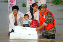 重災(zāi)區(qū)個村落,救災(zāi)船只來往穿梭,接送受困群眾。張見悅 攝