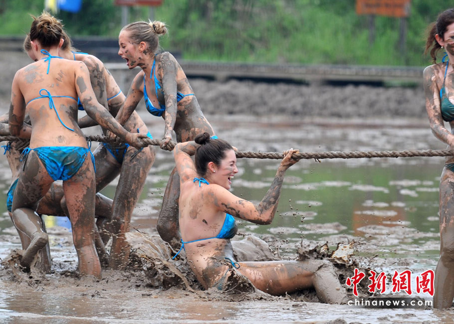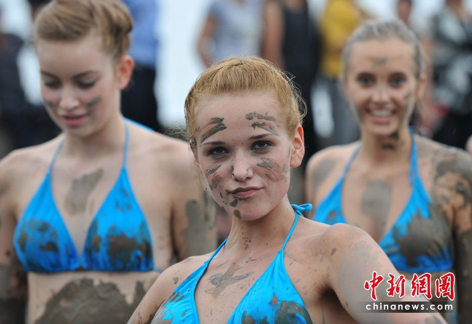 “國際海洋小姐”著比基尼瘋狂“玩泥巴”