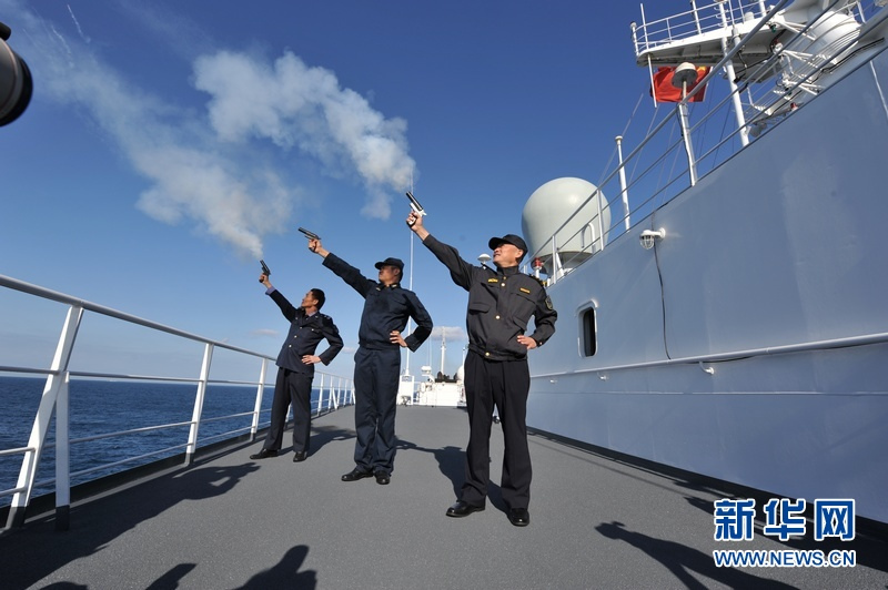海軍、海監(jiān)、漁政部門人員共同發(fā)射信號彈!皷|海協(xié)作—2012演習”軍地海上聯(lián)合維權(quán)演習正式開始。虞起正 攝