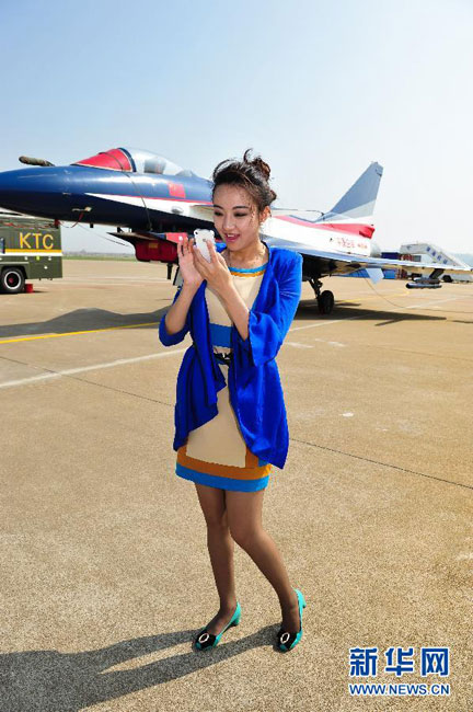 11月13日,一名女觀眾參觀殲10戰(zhàn)機(jī)后查看用手機(jī)拍攝的照片。當(dāng)日,第九屆中國(guó)國(guó)際航空航天博覽會(huì)在珠海開幕,除了豐富多樣的飛機(jī)展示,各種職業(yè)女性也成了一道獨(dú)特的風(fēng)景線。 新華社記者楊光攝 圖片來(lái)源:新華網(wǎng)