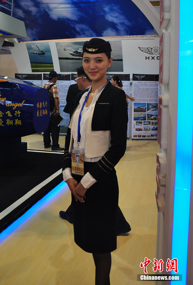 每一屆珠海航展都會有許多佳麗現(xiàn)身,而這次航展上的直升機模特更是讓觀眾大飽眼福。中新網記者 陳海峰 攝