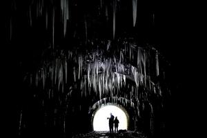 2月15日,遼寧省大連瓦房店市排石海灘,冬季海水潮汐,浪花被洶涌的潮水堆棧到岸邊的崖壁和礁石上,形成如鐘乳石和碧玉般的冰溜子,在陽光映襯下晶瑩剔透。圖片來源:視覺中國