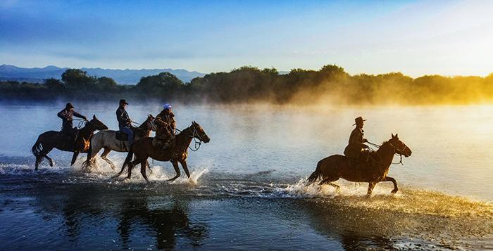夏至?xí)r節(jié),新疆塔里木盆地出現(xiàn)晴好天氣,千年滄桑胡楊與星空、日出相互映襯,呈現(xiàn)出滄桑壯美景象。胡楊是第三紀(jì)殘余的古老樹種,是大自然漫長進(jìn)化過程中幸存下來的非常珍貴的樹種,由于它具有驚人的抗干旱御風(fēng)沙耐鹽堿的能力,能頑強(qiáng)生存繁衍于沙漠之中,也被譽(yù)為“沙漠英雄樹”,有“生而不死一千年,死而不倒一千年,倒而不朽一千年”的美譽(yù)。確·胡熱 攝