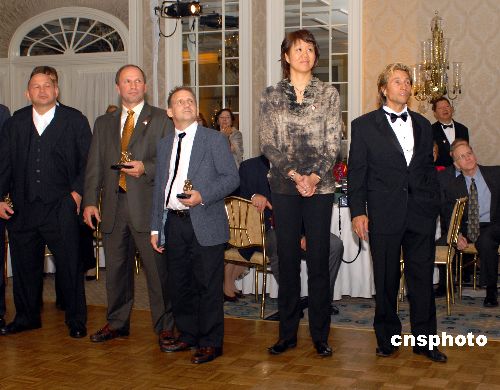 2007年新澤西冠軍之夜于當(dāng)?shù)貢r(shí)間10月20日在美國新澤西州希爾頓飯店舉行。大會(huì)會(huì)場(chǎng)放映著2008年北京奧運(yùn)會(huì)的宣傳片,場(chǎng)外北京奧運(yùn)會(huì)的宣傳畫到處可見,大會(huì)紀(jì)念冊(cè)的封面上印著北京奧運(yùn)會(huì)紀(jì)念章。中國著名女排運(yùn)動(dòng)員、現(xiàn)任美國女排主教練的郎平作為大會(huì)特邀嘉賓出席了當(dāng)晚的活動(dòng),中新社發(fā) 龔文謨 攝