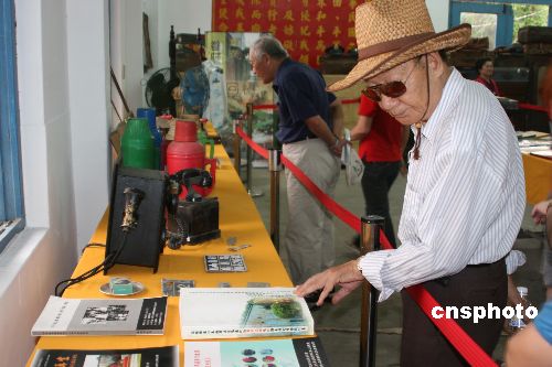 高雄縣首屆“眷村文化節(jié)”二十日和二十一日,位于高雄鳳山市的眷村環(huán)繞、占地八公頃的“海軍明德訓練班”舉辦,許多退役老兵前來參觀懷舊風情的眷村文物展和圖片展。中新社發(fā) 耿軍 攝