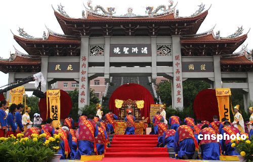 11月1日,第九屆中國(guó)·湄州媽祖文化旅游節(jié)在媽祖故鄉(xiāng)福建省莆田市湄州島開幕,媽祖文化旅游節(jié)上舉行了隆重的媽祖祭典儀式。中新社發(fā) 張勤 攝