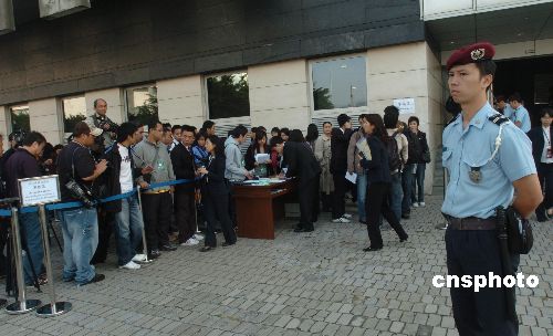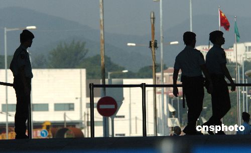 十一月五日,澳門前運輸工務(wù)司司長歐文龍涉嫌嚴(yán)重受賄案在終審法院開審,法院外三步一崗,五步一哨,戒備森嚴(yán)。被控七十六項罪名的歐文龍首度出庭應(yīng)訊,預(yù)計聆訊超過一個月。這是澳門回歸八年來首宗直接由終審法院主理的刑事案,被喻為“世紀(jì)巨貪案”。中新社發(fā) 史利 攝