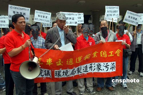 11月7日,香港20多名汽車交通運輸業(yè)總工會代表,由中環(huán)遮打花園前往政府總部,不滿當局就停車熄匙的咨詢文件,用了很多負面手法,過份渲染停車沒有熄匙所帶來的影響。中新社發(fā) 譚達明 攝