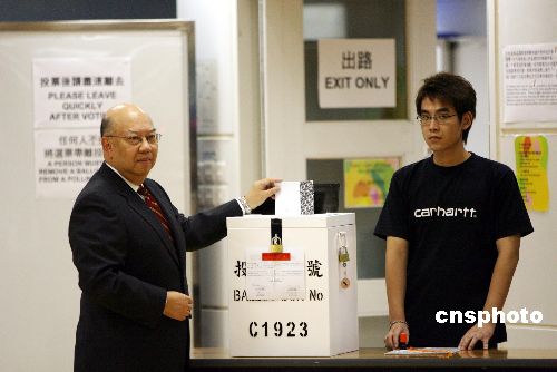 十一月十四日,香港選舉管理委員會主席彭鍵基法官巡視設(shè)于九龍公園體育館的模擬投票站。香港區(qū)議會選舉將于十一月十八日舉行,全港共設(shè)立了四個(gè)模擬投票站,讓選民預(yù)先熟習(xí)有關(guān)的投票程序。中新社發(fā) 武仲林 攝