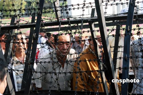 11月16日,高雄市長選舉官司在當(dāng)?shù)囟䦟彾ㄗ。代表中國國民黨的候選人黃俊英在選舉無效和當(dāng)選無效兩項(xiàng)訴訟中均遭判敗訴。民進(jìn)黨的陳菊在去年12月9日勝出擔(dān)任市長后,今次獲承辦法官支持繼續(xù)擔(dān)任市長。今年6月15日,該官司一審曾判,選舉有效,但陳菊當(dāng)選無效。圖為判決前,有陳菊的支持者在拒馬后向內(nèi)張望,表達(dá)關(guān)注。中新社發(fā) 黃少華 攝