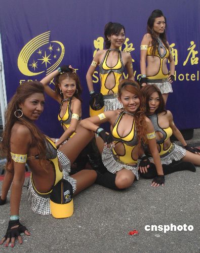 十一月十八日,幾位美女在第五十四屆澳門格蘭披治大賽車上亮相。性感的服飾。苗條的身材,動(dòng)人的眼神,爭(zhēng)艷斗麗,各領(lǐng)風(fēng)騷。中新社發(fā) 史利 攝