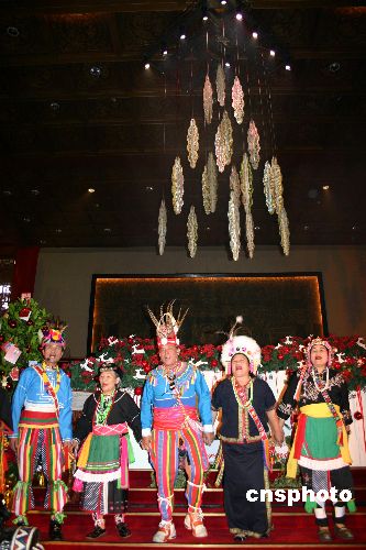 十二月五日下午,古色古香的臺(tái)北圓山飯店舉行圣誕點(diǎn)燈儀式,并請(qǐng)來原住民作為大地的代言人,從大地采光,點(diǎn)燃圣誕之燈。據(jù)了解,今年圓山飯店的圣誕樹造型的燈使用環(huán)保材料,圣誕之后,仍可用作日常的照明。中新社發(fā) 陳國(guó)華 攝