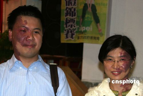 十二月五日,LG杯世界圍棋賽冠軍、臺灣“紅面棋王”周俊勛應(yīng)邀出席臺北市學生圍棋團體錦標賽,現(xiàn)場一位“紅面”女子與其合影留念,相映成趣。中新社發(fā) 董會峰 攝