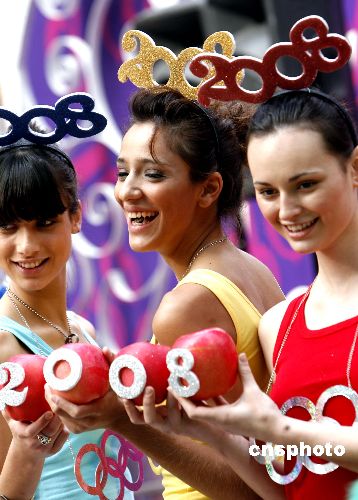 十二月二十日,數(shù)位蘋果倒數(shù)女郎佩戴奧運(yùn)五環(huán)眼睛在香港時代廣場,為除夕夜(12月31日)該地將舉辦的“全港倒數(shù)2008迎奧運(yùn)”活動做新聞發(fā)布。據(jù)介紹,今年會以“北京香港奧運(yùn)同心”為主題,聯(lián)同北京電視臺同步直播當(dāng)晚盛事,香港電臺將制作極盡視聽效果的三個小時的節(jié)目,云集多達(dá)35個以上的演唱單位、金牌運(yùn)動員等一起表演團(tuán)結(jié)、和平、友誼的奧運(yùn)精神。屆時將會有超過10萬人聚集觀看該活動。中新社發(fā) 王麗南 攝