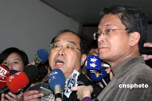 十二月二十六日,為配合臺灣當局的一階段領(lǐng)投票規(guī)劃,“中央選舉委員會”在臺北舉行會議,以六比三通過修改各級選委會組織規(guī)程。圖為國民黨、親民黨推薦的“中選會”委員劉光華、趙叔鍵(右)接受記者采訪,反對行政干預(yù),提岀一階段、兩階段折衷方案。中新社發(fā) 董會峰 攝