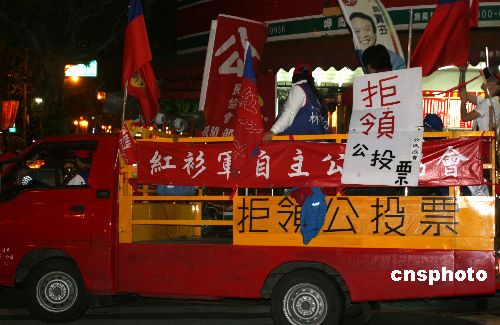 紅衫軍在掃街造勢時(shí)訴求拒領(lǐng)“公投”票。
